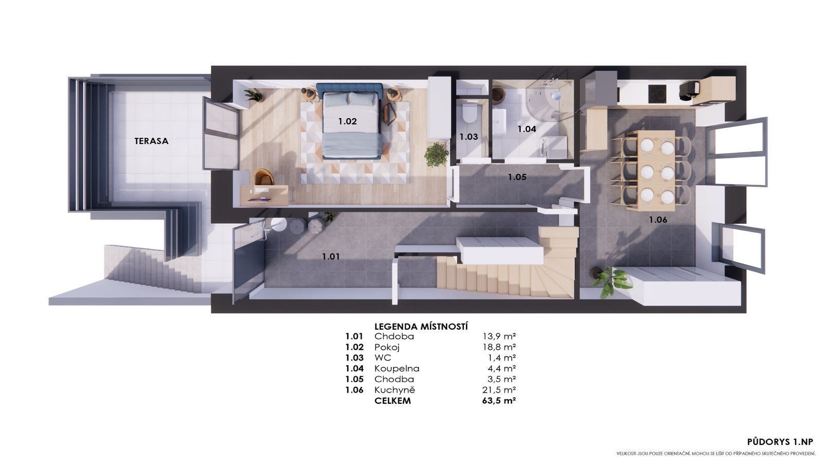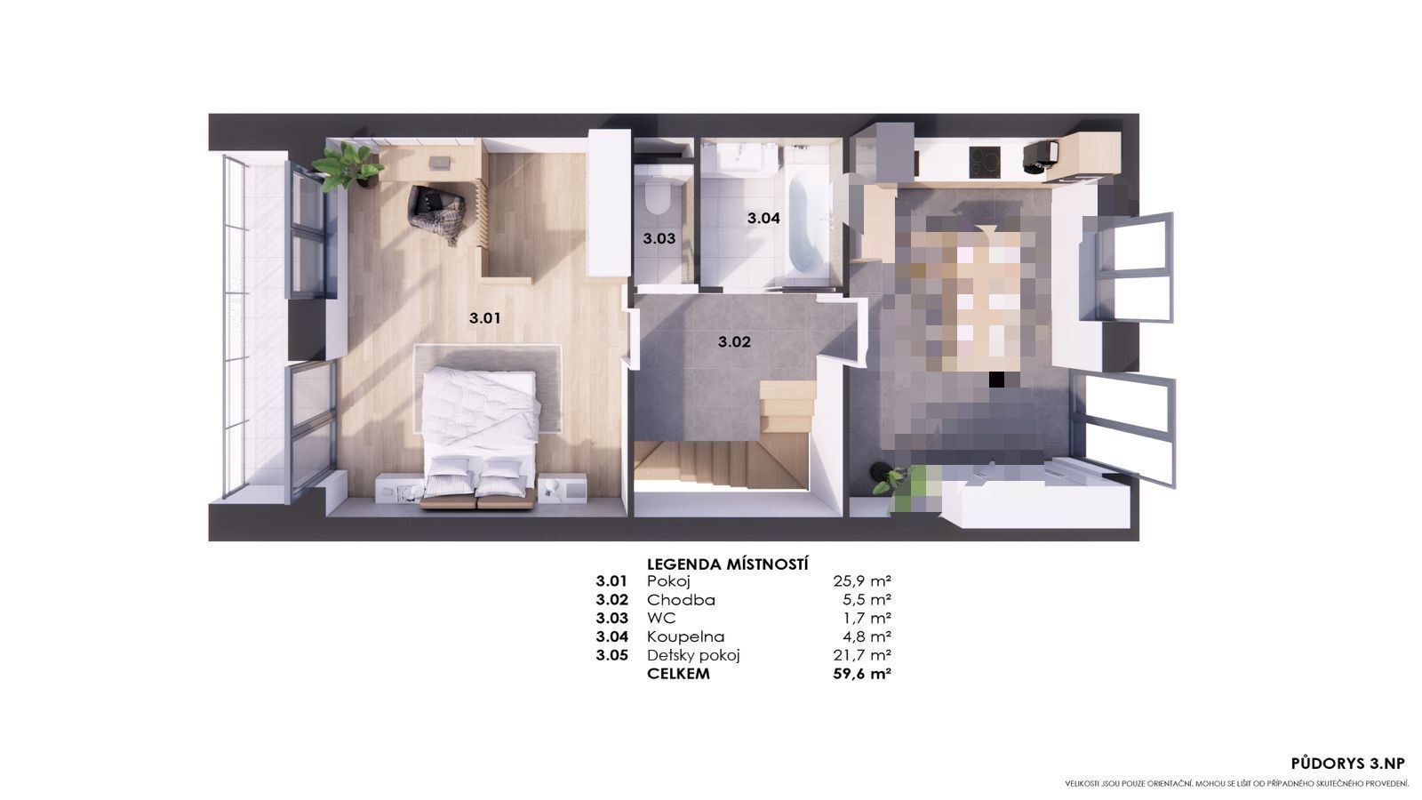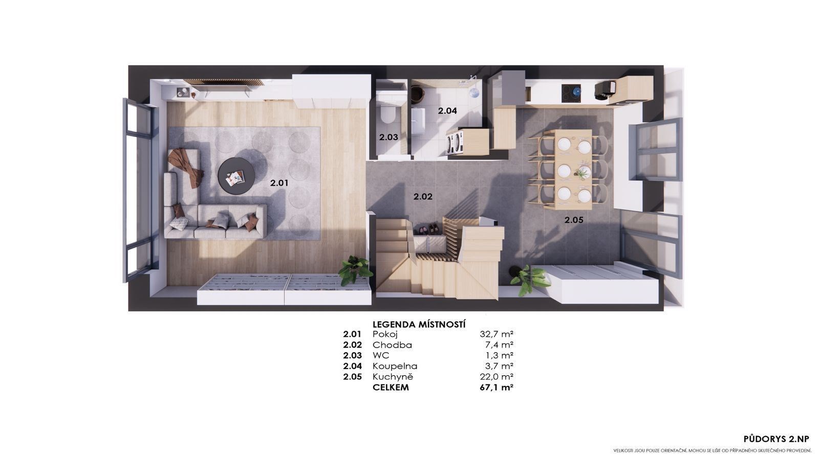Hledáte klidné rodinné bydlení v blízkosti přírody? Exkluzivně nabízíme krásný mezonet 4+kk v nově zrekonstruovaném řadovém domě na ulici Jírovcova v Brně Kohoutovicích, ideální i jako investiční příležitost. Byt se nachází v 2/3. NP řadového domu se 4 podlažími a celkovou podlahovou plochou 143 m². Součástí bytu je dvougaráž a zahrádka. V 1. NP je k prodeji druhá bytová jednotka, byt 2+kk. Dispozice bytu: 1. PP dvougaráž – 33 m2 sklep – 10 m2 2. NP kuchyně s jídelním koutem – 22 m2 obývací pokoj 33 m2 koupelna se sprchovým koutem samostatné WC zahrádka – 35 m2 3. NP ložnice – 26 m2 dětský pokoj – 22 m2 koupelna s vanou samostatné WC Rozmístění jednotlivých podlaží a dispozic je možné si prohlédnout v 3D půdorysech. Místo fotografií jsou použity realistické vizualizace, které poskytují představu o tom, jak by mohly interiéry vypadat. Tyto vizualizace byly vyhotoveny na základě skutečných rozměrů z pasportizace. Rekonstrukce Dům prošel kompletní rekonstrukcí zahrnující: Exteriér: zateplení, nové omítky, okna s termoizolačním trojsklem, hliníkové rámy a žaluzie, nové garážové a vchodové dveře, příprava na fotovoltaické panely a klimatizaci. Interiér: výměna elektroinstalace, vody a odpadů, nové topení vytápění a ohřev TUV zajišťuje vlastní plynový kotel, koupelna – obklady a sanita, vinylové podlahy v kombinaci s velkoformátovou dlažbou a bezfalcové interiérové dveře. Dům má vyhotoveno Prohlášení vlastníků – celkem 2 bytové jednotky. Energetická třída domu je C. Zpracována nová pasportizace domu. Mezonet bude předáván bez kuchyňské linky a interiérového osvětlení (není zahrnuto v ceně). Návrhy kuchyňských linek jsou připraveny. Výběr dle preferencí nových majitelů, stejně jako interiérové osvětlení. Cena: 14 450 000, Kč včetně provize RK a právního servisu. Cena dvougaráže: 850 000, Kč. Předpokládaný termín k nastěhování: leden 2025. Lokalita: Ulice Jírovcova je typickou rezidenční oblastí obklopenou rodinnými domy a zelení, situována u lesa s krásným výhledem. Kohoutovice nabízejí ideální prostředí pro rodiny a ty, kteří hledají únik od rušného městského života, s dobrou dostupností veřejnou dopravou. V této lokalitě najdete základní občanskou vybavenost, jako jsou obchody, školky, školy a sportovní zařízení.
