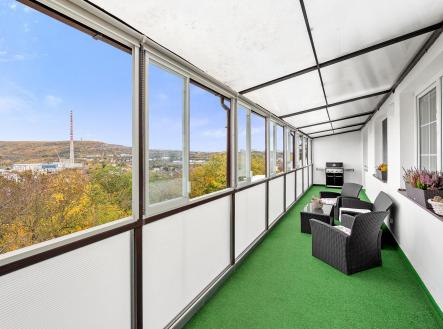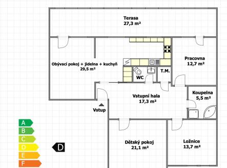 Exkluzivně nabízíme ke koupi nadstandardní a prostorný byt o dispozici 4+kk s jídelnou a velkou terasou (27,3 m²), který disponuje 129,9 m² užitné plochy a nachází se ve 2. podlaží cihlového domu. Díky svému promyšlenému dispozičnímu řešení poskytuje maximální pohodlí pro rodinné bydlení, dostatek světla a nádherný východní panoramatický výhled do zeleně směrem na Cacovický ostrov. Ten zaručuje klidné probuzení s prvními ranními paprsky slunce a příjemné světlo po celý den. Jedinečný panoramatický výhled do okolní přírody vytváří atmosféru harmonie a uvolnění - ideální pro odpočinek po náročném dni. Dispozice a vybavení bytu: Byt je rozdělen tak, aby každý člen rodiny měl svůj prostor, a přitom zůstalo zachováno příjemné propojení obytných části. Celková užitná plocha bytu činí 129,9 m².(z toho terasa 27,3 m²) - obývací pokoj s přímým vstupem na terasu orientovanou východně do klidné části zeleně s jídelním koutem a kuchyní - 29,5 m² - dětský pokoj - 21,1 m² - ložnice - 13,7 m² - pracovna - 12,7 m² - vstupní hala - 17,3 m² - koupelna - 5,5 m² - WC - 1,9 m² - technická místnost - 0,9 m² - terasa - 27,3 m² Interiér bytu byl navržen s důrazem na funkčnost, estetiku a kvalitu provedení. Moderní kuchyňská linka je vybavena kvalitními vestavěnými spotřebiči zn. Franke - elektrickou a mikrovlnou troubou, plynovým sporákem, myčkou, digestoří a chladničkou s mrazákem. Pračka i sušička jsou prakticky umístněné ve vestavěné skříni, takže neruší vzhled interiéru. Součástí bytu jsou vestavěné skříně na míru v hale a dětském pokoji, které poskytují dostatek úložného prostoru. Technické zázemí: Vytápění a ohřev teplé vody zajišťuje vlastní plynový kotel Thermona o výkonu 14 kW zaručující nízké náklady. Sklepní kóje 3,6 m² a garážové stání v suterénu bytového domu. Možnost pronajmu dalšího garážového stání. V domě je k dispozici kolárna / kočárkárna. Zálohy na služby a fond oprav: 2877 Kč / měsíčně Elektřina: 1300 Kč / měsíčně. Plyn: 1300 Kč / měsíčně Energetická náročnost budovy: třída D Lokalita a okolí: Lesná patří dlouhodobě mezi nejvyhledávanější brněnské lokality díky ideální kombinaci městského komfortu a bezprostřední blízkosti přírody. Ulice Vyhlídka se nachází v nejklidnější východní části Lesné s rodinnými domy a zahradami. V bezprostřední okolí domu je možnost bezproblémové parkování. Bydlení s vyjmečným panoramatickým výhledem na Cacovický ostrov nabízí jedinečné spojení do centra Brna - autem i MHD se tam dostanete během několika minut. V okolí se nachází lesoparky, běžecké a cyklostezky, v pěší vzdálenosti jsou školky, školy, obchody a 100m od domu se nachází krásné dětské hřiště, sportoviště na míčové hry a workout a vyhlášená restaurace. Pro rodiny, páry i jednotlivce, kteří hledají komfortní bydlení v zeleni, představuje tento byt ideální volbou. Shrnutí: Exkluzivní byt 4+kk s jídelnou a terasou Užitná plocha bytu 129,9 m² Garážové stání a sklepní kóje v ceně Nadstandardní vybavení a velmi dobrý stav Klidná a žádaná lokalita Brno - Lesná Bez nutnosti investic