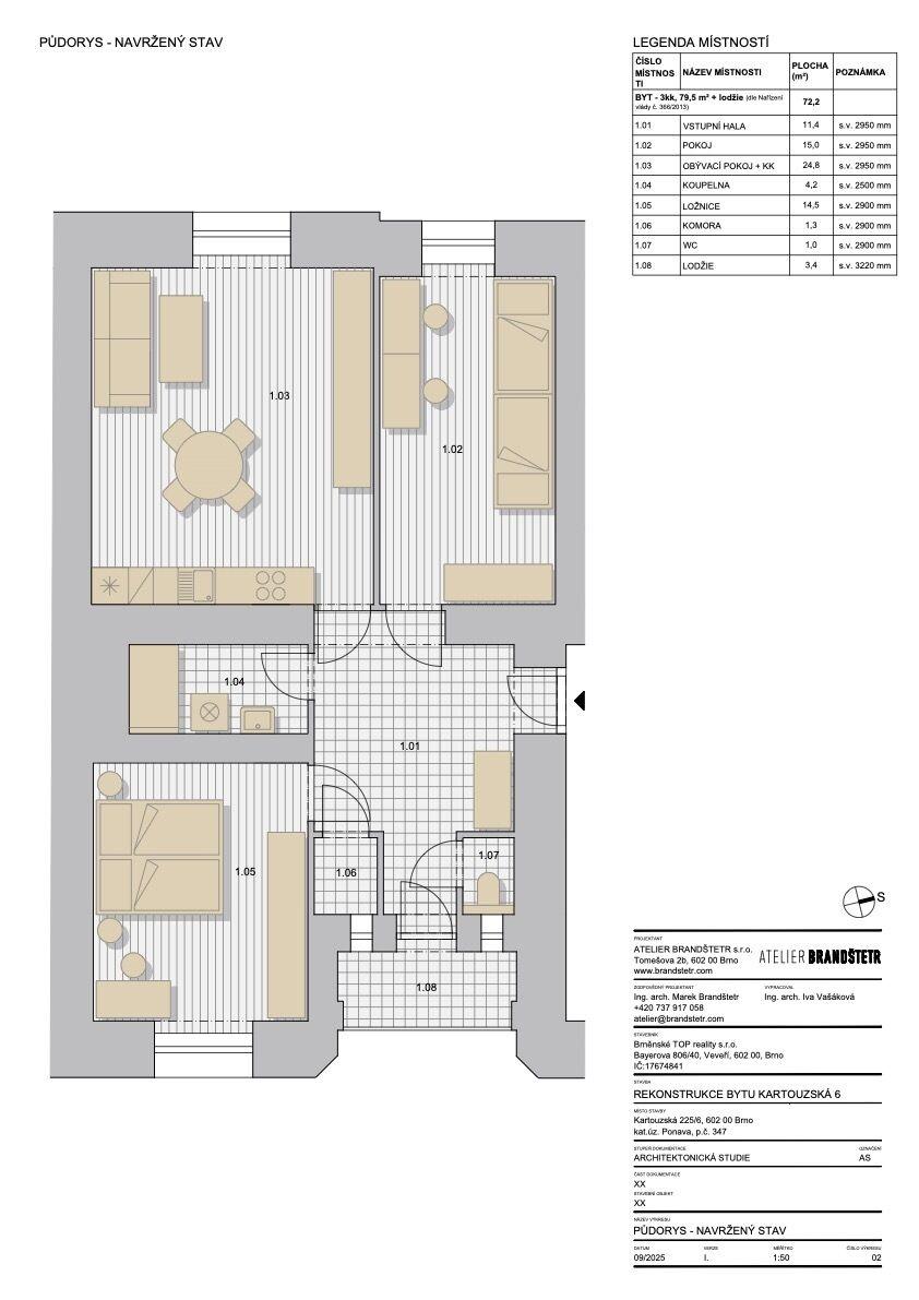 Nabízím k prodeji prostorný byt s balkonem a sklepem v 1. patře cihlového domu v klidné jednosměrné ulici Kartouzská v městské části Brno – Královo Pole. Byt je v současné době dispozičně řešen jako 2+1 s komorou, samostatným WC, centrální vstupní halou a neprůchozími pokoji. Celková výměra bytu činí 79,5 m². Součástí bytu je balkon a sklep není započítáno do výměry bytu. Výška stropů cca 3 metry dodává bytu mimořádnou vzdušnost a dostatek denního světla. Byt má nepopsatelnou atmosféru a klid, který je cítit ihned po vstupu a je dále umocněn orientací do tichého vnitrobloku byt je téměř součástí zahrady. Dispozice bytu nabízí reálnou možnost úpravy na 3+KK, což z něj činí ideální volbu jak pro rodinné bydlení, tak pro dlouhodobou investici. Původní půdorys i návrh nové dispozice jsou k dispozici v příloze. Možnost přestavby rád osobně představím při prohlídce. Byt má podíl na užívání společné zahrady ve vnitrobloku, která je téměř na dosah ruky z bytu. Zahrada nabízí ideální prostor pro odpočinek, relaxaci, posezení či letní grilování. Jednosměrná ulice zajišťuje klidné bydlení bez rušivého provozu. Ve všech pokojích jsou nově repasované původní dřevěné parkety. Repasované jsou rovněž původní dřevěné dveře a zárubně včetně klik a zámků. Plastová okna prošla kompletním servisem. Vstupní dveře jsou bezpečnostní protipožární s vícebodovým zámkem. V komoře jsou připraveny vývody pro nové umístění kotle. Královo Pole patří dlouhodobě mezi nejvyhledávanější a cenově rostoucí lokality Brna. Lokalita je oblíbená jak mezi investory, tak mezi rodinami díky klidnému charakteru, výborné dopravní dostupnosti, školám, školkám, zeleni a kompletní občanské vybavenosti. Stabilní poptávka a omezená nabídka cihlových bytů v této oblasti vytváří velmi dobrý potenciál dlouhodobého zhodnocení. Velkou předností je okamžité napojení na velký městský okruh a rychlá dostupnost centra města MHD. V okolí se nachází menší obchody, kavárny, restaurace i obchodní centrum Královo Pole. Byt je vhodný jak pro komfortní rodinné bydlení, tak jako dlouhodobá investice s potenciálem dalšího růstu hodnoty. Nový vlastník si jej může přetvořit dle vlastních představ a potřeb. V současné době probíhá příprava pro kompletní rekonstrukci sklepů a zateplení stropů. Vše hrazeno z fondu oprav bez navýšení FO. Pro více informací nebo domluvení prohlídky mě neváhejte kontaktovat.