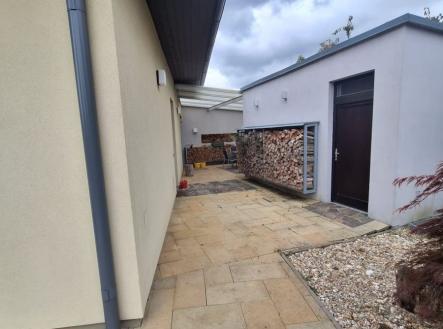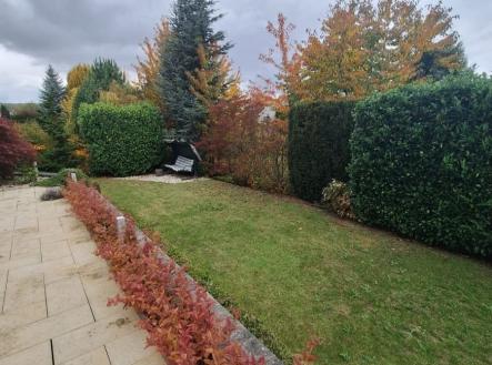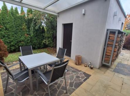 Nabízím k prodeji velkoryse řešený rodinný dům typu "bungalov" s dispozicí 4+1, šatnou, garáží, podsklepeným zahradním domkem a prostorným garážovým stáním v Žebětíně. Postaven v roce 2008, řešen bezbariérově včetně nadstandardního vybavení (zařizovací předměty, vestavěný nábytek, spotřebiče). Dům je čtvercového půdorysu, který rozděluje prostorná chodba s vestavěnými skříněmi na společenskou a klidovou část. Společenskou část tvoří obývací pokoj s vysokým stropem a přiznanými dřevěnými trámy, kuchyň se spíží a jídelní kout. Klidová část sestává z ložnice, dvou pokojíků, koupelny s toaletou a prostorné šatny. Z této části domu je možné vystoupit po spouštěcích schodech do malého úložného podkrovního prostoru. Dům má další samostatnou toaletu přístupnou z chodby, příruční šatnu se zádveřím a technickou místnost s prádelním a úklidovým koutem. Z chodby je přímý vstup na terasu, na niž se dá vstoupit i z kuchyně, nebo francouzským oknem z obývacího pokoje. Terasa má vedle kuchyně kryté posezení v závětří, jež tvoří podsklepený zahradní domek. Tento prostor obepíná osvětlená zahrada se vzrostlou zelení a závlahovým systémem, která dotváří celkově útulný dojem. Zeleň přirozeně odděluje zahradu od okolních domů. Zařizovací předměty Villeroy&Boch, interiérové žaluzie u každého okna, spotřebiče Miele (parní trouba, mikrovlnná trouba, lednička s mrazákem, indukční varná deska, digestoř) jsou součástí kuchyňské linky dodané studiem Symerský, stejně jako veškerý další dýhovaný vestavěný nábytek a interiérové dveře. Vytápění plynovým kotlem v kombinaci s podlahovým topením a fancoily v obývacím pokoji a radiátorem v ložnici. Stav nemovitosti odpovídá běžnému opotřebení, po celou dobu byl obýván 1-2 osobami, v současné době není zcela využit, což je i důvod prodeje. Dům k dispozici od 9/2026 nebo dle dohody, příprava kupní smlouvy a služby advokátní kanceláře v ceně nemovitosti. V obci Žebětín, který je v těsném sousedství Přírodního parku Podkomorské lesy a Kníničské přehrady, panuje příjemná atmosféra, jsou zde potraviny, restaurace, pivovárek, zastávka MHD (linky 52, 161 a noční N98) 3 min pěšky od domu. Prohlídka po dohodě možná již nyní, avšak pouze pro velmi vážné zájemce s jasnou představou o financování a následným jednáním o kupní smlouvě. Nabídka není určena pro realitní kanceláře. Tato nemovitost je určena výhradně přímým zájemcům o koupi. Na inzerát můžete také reagovat přímo na webu Bezrealitky.