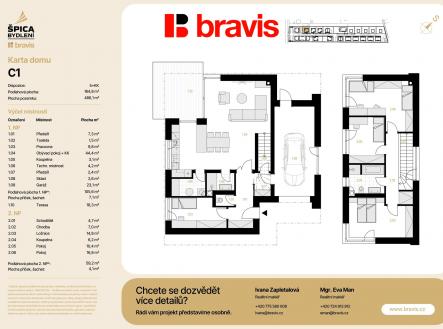 Moderní dům 5+kk v klidné brněnské lokalitě a v rezidenčním projektu pro náročné Nabízíme exkluzivní rodinný dům označený C1 o dispozici 5+kk, zahrada 279,8 m, garáž 23,3 m2, plocha zpevněná 65,8 m2, v novém projektu Špica bydlení. Dům o celkové výměře 164,8 m2 na pozemku 486,1 m2, plocha pozemku bez domu 362,7 m2. Dům C1(5+kk) Podlaží: přízemí, nízkoenergetický dům . Užitná plocha: 164,8 m2. - Obývací pokoj 45 m2 s přípravou na kuchyňský kout. - Garáž 23,3 m2. - Terasa 2x 7,3 a 8 m2. - Ložnice 14,7 m2. - Pokoj 10,4 m2. - Pokoj 16,8 m2. - Pracovna 9,8 m2. - Koupelna 3,1 a 6,2 m2. - Toaleta 1,4 m2. - Předsíň 7,8 a 2,5 m2. - Technická místnost 4,2 m2. - Sklad 2,9 m2. - Terasa 18,3 m2. - Zahrada 279,8 m2. - Celková plocha pozemku 486,1 m2. K domu navíc náleží venkovní parkovací stání. Výhodou projektu je výhodné financování: 10 % při podpisu smlouvy a 90 % až po kolaudaci. Ideální řešení pro klienty, kteří chtějí bezpečně financovat nákup nové nemovitosti s minimální okamžitou zátěží. Nový vlastník si bude moci vybrat dekor podlah, obkladů a dveří z připravených vzorníků a propracovat si interiér podle vlastního vkusu ještě před dokončením stavby. Špica bydlení — proč právě tento projekt. Jde o exkluzivní developerský projekt situovaný v klidné brněnské městské části. Nabízí jedinečnou kombinaci moderní architektury, funkčních dispozic a vysokého standardu provedení. V rámci projektu vzniká celkem 49 jednotek/nemovitostí různých typů — 25 bytů v nízkopodlažních bytových domech, 9 rodinných domů a 15 bytů ve viladomech. Projekt je navržen s ohledem na nízkoenergetickou efektivitu, úsporný provoz nových domácností, dlouhodobou udržitelnost a kvalitní materiálové provedení. Špica bydlení je zároveň atraktivní volbou pro investory, kteří hledají perspektivní novostavbu v dobře dostupné lokalitě s potenciálem dlouhodobého zhodnocení. Stabilní poptávka po nájemním bydlení v této části Brna a dobrá dopravní dostupnost činí z projektu výbornou příležitost pro bezpečnou a dlouhodobou investici. Klienti-investoři navíc mohou využít odborné služby BRAVIS a bezplatné nacenění tržního nájemného pro daný byt i i kompletní správu nemovitosti, která zahrnuje vyhledání prověřených nájemníků, smluvní zajištění, inkaso plateb i pravidelné vyúčtování. Díky tomu se investice stává bezstarostnou a maximálně efektivní. Lokalita Brno-Tuřany — klidné bydlení s výhodami města Městská čtvrť Brno‑Tuřany je situována na jihovýchodním okraji Brna. Nabízí klidné bydlení s veškerou občanskou vybaveností: školy, školky, obchody, restaurace, služby a sportoviště — ideální pro život rodiny i jednotlivce. Pro více informací kontaktujte níže uvedeného makléře