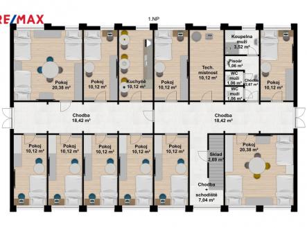 Ve výhradním zastoupení majitele nabízíme k prodeji společnosti s ručením omezeným, v jejímž vlastnictví je komerční areál Brno - Židenice, o celkové výměře 2.369 m2. Na pozemku se nachází dvoupatrová budova ubytovny, o zastavěné ploše 237 m2, která prošla v roce 2016 kompletní rekonstrukcí, zahrnující nová okna, dveře, zateplení, podlahy. Celkem obsahuje 23 zařízených pokojů, dvě kuchyně, sociální zařízení, atd. Dále se na pozemku nachází autoservis – o zastavěné ploše 233 m2, jehož vnitřní řešení je následující: pneuservis / měření emisí 64 m2, sklad maziv 7,5 m2, kancelář 13 m2, autoservis 129 m2, WC, sprcha, šatna 15 m2. Jeho vybavení představuje 4x dvou sloupový zvedák 4t, 1x čtyř sloupový zvedák + 3D podvozková geometrie, pneuservis, kompresor + tlaková nádoba 500l, plnička klimatizací, rozvod vzduchu po celé dílně, ponky, kompletní sortiment ruční, elektrické, pneumatické nářadí, sociální zázemí (sprcha, WC, relax zóna), kancelář vč. vybavení (PC, tiskárna, skener), kamerový systém, ústřední vytápění, 2x garážová sekční vrata výška 2,7m na DO, volná parkovací plocha pro cca 30 vozidel. V areálu je schválená provozovna sběru a výkupu kovů – celková výměra 436 m2, jejíž součástí je unimo buňka pro zaměstnance, váhy, kompletní vybavení pro provoz. Poslední část areálu tvoří půjčovna vozíků – 10 vozíků zn. Vezeko, (malé nákladní až po autopřepravník), dále 4x železobetonová garáž Prefa Brno, vlastní studna s užitkovou vodou. V současné době je areál kompletně pronajat, což zajišťuje rychlou návratnost vložené investice. Průkaz energetické náročnosti budovy nebyl dodán, proto uvádíme energetickou třídu G.