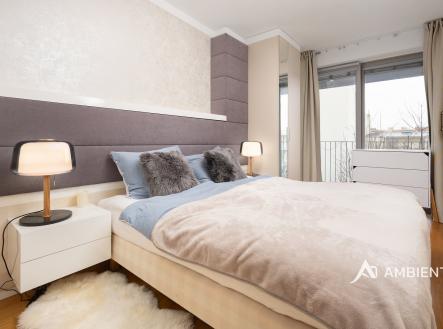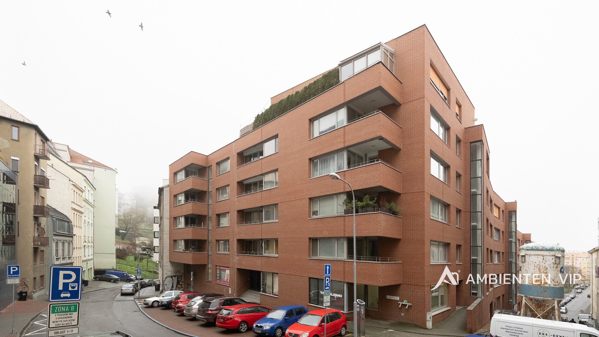 AMBIENTEN VIP si Vám dovoluje exkluzivně nabídnout krásný byt o dispozici 3+kk se dvěma lodžiemi, sklepní jednotkou a parkovacím stáním v garáži domu nacházející se v historické čtvrti Staré Brno. Celková užitná plocha bytu je 68,7 m² a nachází se v 3. nadzemním podlaží. Při vstupu do bytu vcházíte do vstupní chodby, která je vybavená vestavěnými skříněmi a umožňuje vstup do všech místností v bytě. Obývací prostor s kuchyňským koutem má přímý vstup na lodžii (4,9 m²) orientovanou do ulice. Kuchyně je vybavena vestavnými spotřebiči – lednice, mrazák, elektrická trouba, indukční deska s digestoří a nabízí mnoho úložného prostoru. Dále se zde nachází dva samostatné pokoje, které mají přímý vstup na lodžii (8,3 m²) orientovanou do vnitrobloku. Koupelna disponuje umyvadlem a sprchovým koutem. Toaleta je umístěna samostatně. K bytu náleží parkovací stání v garáži domu a sklepní jednotka. Sklepní jednotka je již zahrnuta v ceně. Parkovací stání lze odkoupit za 600.00,— Kč. Ve vnitrobloku domu se nachází soukromí park s dětským hřištěm, který mohou využívat pouze rezidenti domu. Dominantou bytu je jeho jedinečná poloha v klidné ulici v přímém centru městě Brna se vzdáleností jen pár minut chůze od Šilingrova náměstí, Zelného trhu, katedrály sv. Petra a Pavla, parku hradu Špilberk nebo náměstí Svobody. Tato lokalita nabízí veškerou občanskou vybavenost. Pár metrů odtud je základní a mateřská škola, gymnázium a nemocnice u sv. Anny. V okolí jsou také vyhlášené kavárny, restaurace, bary, obchody, památky a parky. Zastávky MHD jsou vzdáleny přibližně 2 minuty chůzí a hlavní nádraží cca 10 minut chůzí či 2 zastávky tramvají. V případě, že budete mít zájem o více informací či termín prohlídky, neváhejte nás kontaktovat!