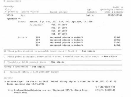 Nabízíme k prodeji prostorný byt 2+1 o velikosti 78 m², umístěný v atraktivní lokalitě širšího centra Brna na ulici Tábor 44d (jednotka č. 523/8). Bytová jednotka disponuje dvěma neprůchozími pokoji, které zajišťují dostatek soukromí. Koupelna s vanou je prakticky oddělená od toalety. K dispozici je také samostatná kuchyně, předsíň a komora, která poslouží jako ideální úložný prostor. K bytu náleží sklep o velikosti cca 4 m² a v domě je k dispozici i společná kolárna a kočárkárna. Parkování je pohodlně dostupné přímo před domem. Měsíční náklady vůči SVJ jsou přibližně 6 700 Kč. Do této platby spadá zejména příspěvek na správu domu a pozemku, náklady na správu, spotřeba studené a teplé vody, vytápění, elektřina ve společných prostorách, provoz výtahu, úklid, společná televizní anténa, odměna zástupci domu, pojištění a další související služby. Jednotka se nachází v atraktivní oblasti v bezprostřední blízkosti centra Brna. Samotné centrum Brna je dostupné v pěší vzdálenosti. V těsné blízkosti se nachází tramvajová a autobusová zastávka Klusáčkova či Šelepova, obě zajišťující dojezd do centra Brna během deseti minut. V okolí se nachází kompletní občanská vybavenost včetně několika obchodů, restaurací, barů a ostatních služeb. V blízkosti je známá restaurace Šelepka a také park, supermarket Billa a Lidl, základní a mateřská škola, dětské hřiště, fitness centrum, tenisová hala apod. Významný brněnský park Lužánky je vzdálen 10 minut chůze. Tento byt představuje skvělou příležitost k vlastnímu bydlení i investici v jedné z nejžádanějších částí Brna. Součástí inzerátu je i vizualizace pokojů. Součástí nabídky je i praktické základní vybavení pro okamžité bydlení, které však nemá zásadní vliv na hodnotu bytu. Po domluvě je možné předat i bez vybavení. V případě zájmu o více informací nebo prohlídku nás neváhejte kontaktovat.