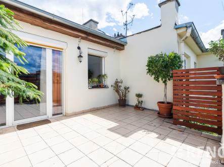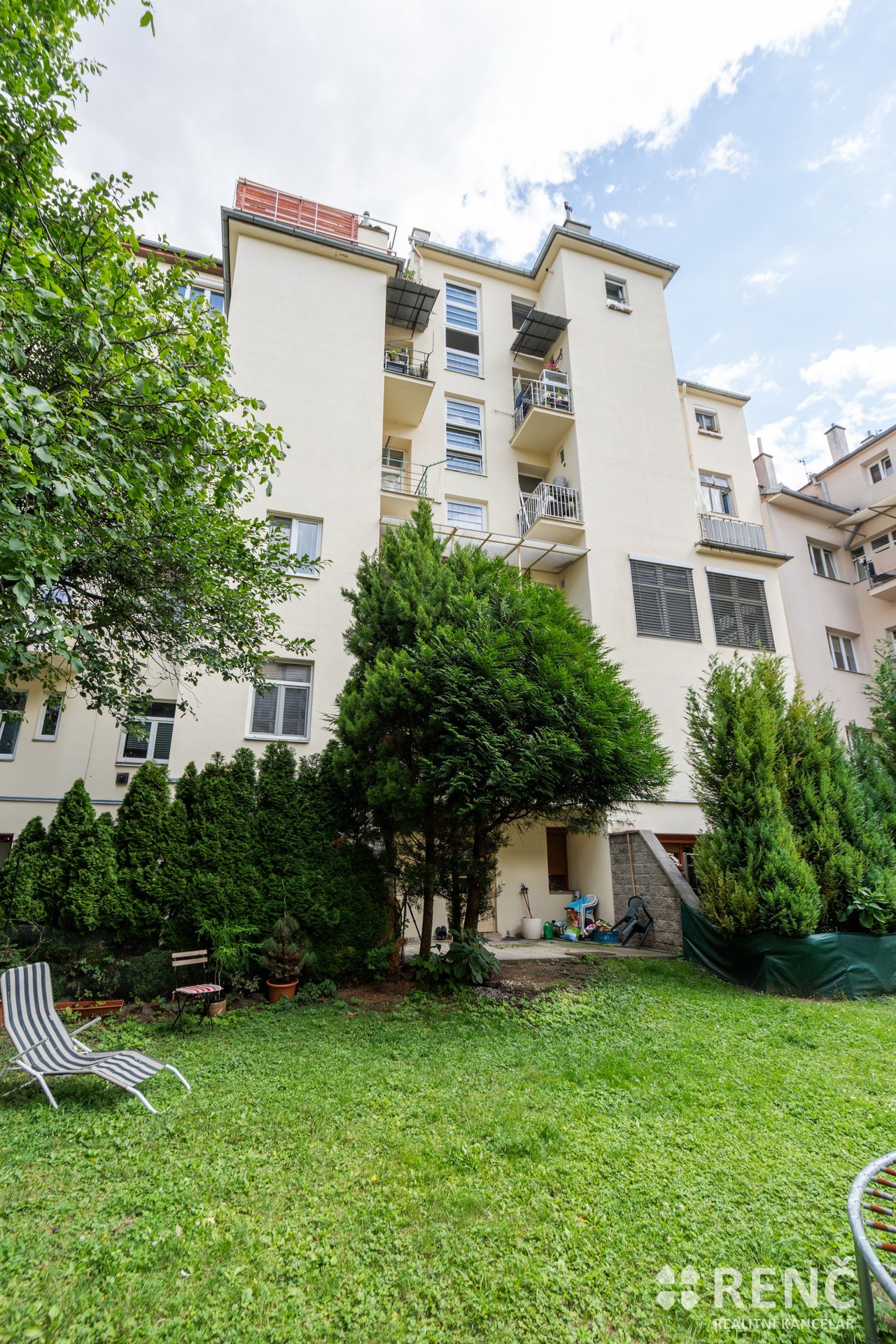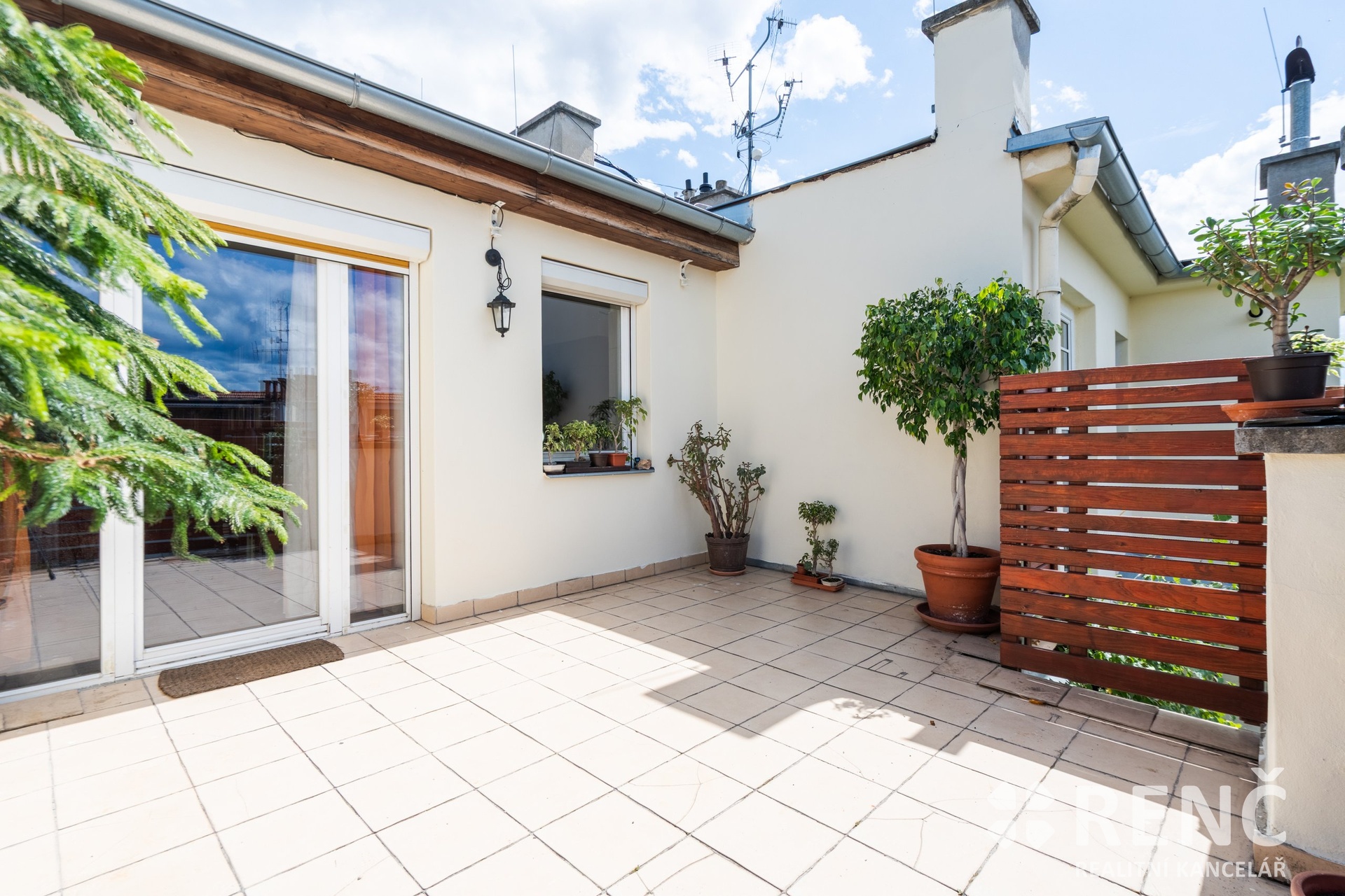 Ke koupi nabízíme prostorný světlý byt o dispozici 4+kk s terasou, který se nachází ve 4. patře zděného bytového domu na ul. Erbenova na úpatí čtvrti Černá Pole. K bytu lze koupit rovněž garáž v domě a s ní související parkovací stání pro druhý automobil před garáží. Součástí bytu je velká vstupní předsíň se šatní skříní, hlavní obytný prostor s kuchyní, jídelnou a vstupem na terasu, vše orientováno do vnitrobloku. Byt má rovněž tři samostatné ložnice a šatnu, koupelnu s velkým oknem a vanou a samostatné WC. Celková podlahová plocha bytu je 102 m2, terasa navazující na obývací pokoj má 19 m2. Plocha hlavního obytného prostoru je 42 m2, předsíň má výměru 4,2 m2, koupelna 6 m2, šatna 4 m2 a tři ložnice se střešními okny a zkosenými stropy mají výměry 18 m2, 13 m2 a 12 m2. Byt je orientován jihovýchodním a severozápadním směrem a je díky své poloze velmi dobře osvětlen. Za domem ve vnitrobloku je uzavřená společná zahrada, kterou lze využívat k odpočinku a posezení. V přízemí domu je místnost pro uložení kol a kočárků. Byt byl postaven a kolaudován v roce 2008 jako půdní vestavba ve střeše funkcionalistického bytového domu z roku 1934. Byt je vybaven kuchyňskou linkou včetně sklokeramické varné desky, elektrické trouby a myčky. V hlavním obytném prostoru je klimatizační jednotka. V předsíni je umístěna šatní skříň, v obývacím pokoji knihovna atp. Vytápění bytu a ohřev vody zajištuje vlastní plynový kotel umístěný v koupelně. Bytová jednotka má z části plastová okna včetně předokenních rolet, z části střešní okna Fakro včetně venkovních clon. Střecha nad bytem s keramickou a plechovou krytinou z roku 2008, krov dřevěný. Vnitřní stěny bytu jsou z části zděné a z části sádrokartonové. Podlaha v obývacím pokoji dřevěná, v ložnicích lamino a podlahy keramické v koupelně, na WC a v předsíni. V září 2025 proběhla generální oprava terasy včetně nové hydroizolace, nášlapná vrstva je osazena odolným cedrovým dřevem. Měsíční zálohové platby za služby spojené s užíváním bytu (voda, fond oprav, společné výdaje domu) činí 2.987 Kč. Nad rámec této platby je hrazena spotřeba plynu pro ohřev vody a vytápění ve výši 2.000 Kč a spotřeba elektřiny ve výši 1.300 Kč, celkem tedy činí měsíční náklady za užívání bytu 6.300 Kč. K bytu je možné koupit i garáž za cenu 2.000.000 Kč, která je umístěná v domě, díky pozemku před garáží ve spoluvlastnictví majitelů je tak možné zaparkovat dva automobily. V okolí domu jsou rovněž veřejná parkovací místa – modré zóny kategorie C, pro rezidenty za roční poplatek 800 Kč. Prvorepublikový bytový dům prošel opravami společných částí, včetně honosného vstupu obloženého z části mramorem, má nové vstupní dveře, novou fasádu, nové vedení páteřních instalací, zahrada je udržovaná, v domě funguje velmi dobře SVJ. Dům je situován na úpatí Černých Polí, cca 100 m od parku Lužánky, v okolí je veškerá občanská vybavenost, do centra města je možné dojít během 10-ti minut přes park pěšky. V případě zájmu o prohlídku nás prosím kontaktujte. Nemovitost bude k nastěhování na podzim 2025 v termínu dle dohody. Byt je možné použít jako zástavu v případě financování koupě prostřednictvím úvěru.
