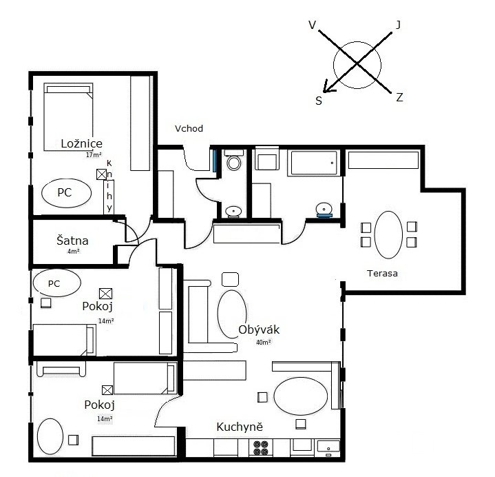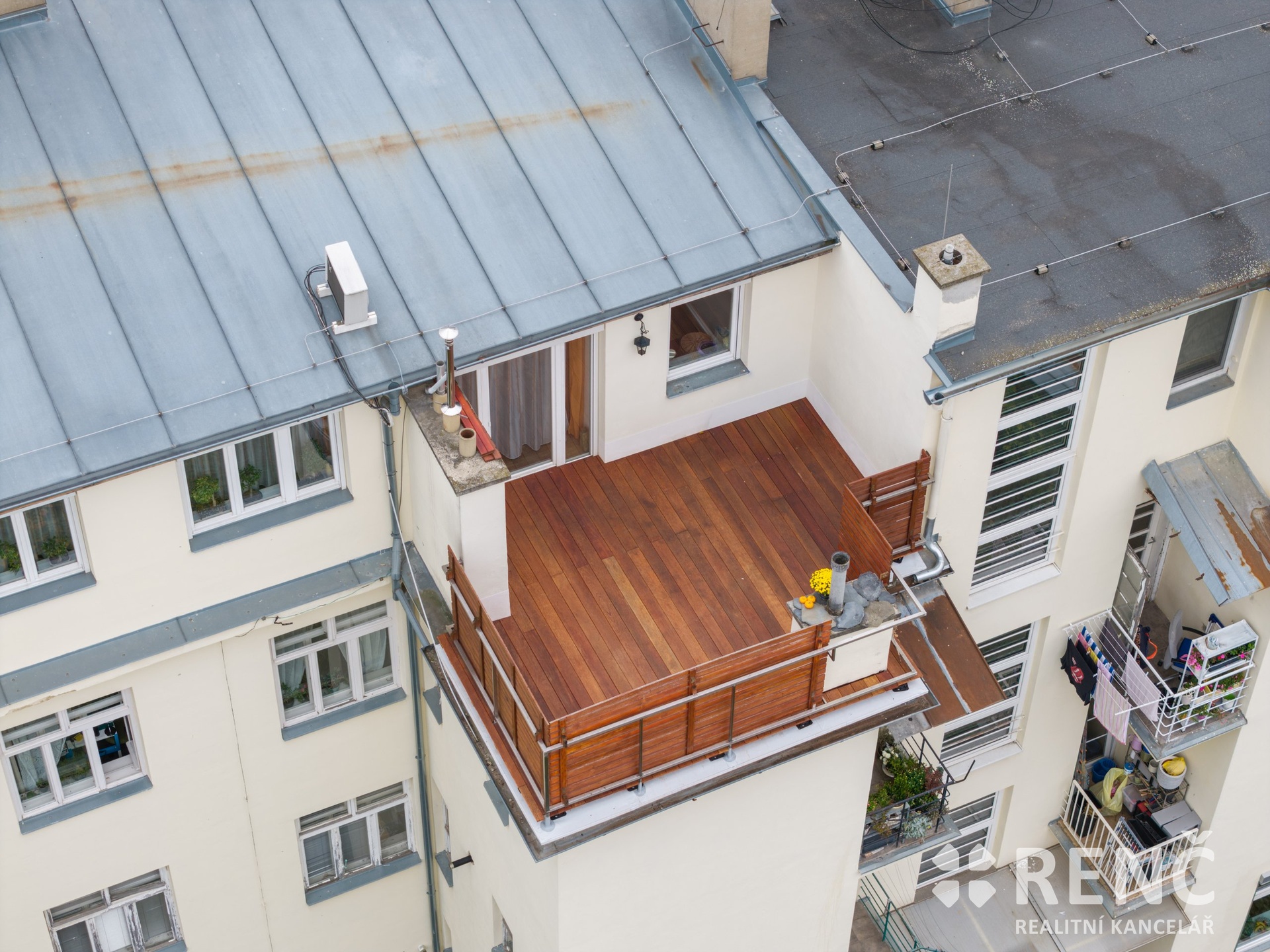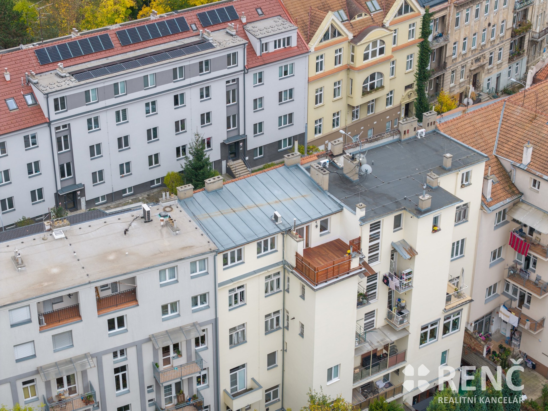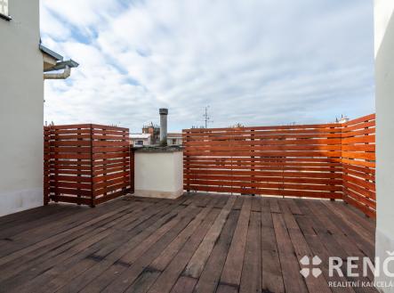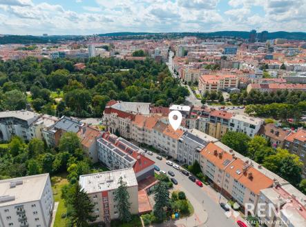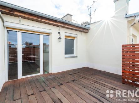 Ke koupi nabízíme prostorný světlý byt o dispozici 4+kk s terasou, který se nachází ve 4. patře zděného bytového domu na ul. Erbenova na úpatí čtvrti Černá Pole. K bytu lze koupit rovněž garáž v domě a s ní související parkovací stání pro druhý automobil před garáží. Součástí bytu je velká vstupní předsíň se šatní skříní, hlavní obytný prostor s kuchyní, jídelnou a vstupem na terasu, vše orientováno do vnitrobloku. Byt má rovněž tři samostatné ložnice a šatnu, koupelnu s velkým oknem a vanou a samostatné WC. Celková podlahová plocha bytu je 102 m2, terasa navazující na obývací pokoj má dalších 19 m2. Plocha hlavního obytného prostoru je 42 m2, předsíň má výměru 4,2 m2, koupelna 6 m2, šatna 4 m2 a tři ložnice se střešními okny a zkosenými stropy mají výměry 18 m2, 13 m2 a 12 m2. Byt je orientován jihovýchodním a severozápadním směrem a je díky své poloze velmi dobře osvětlen. Za domem ve vnitrobloku je uzavřená společná zahrada, kterou lze využívat k odpočinku a posezení. V přízemí domu je menší místnost pro uložení kol a kočárků. Byt byl postaven a kolaudován v roce 2008 jako půdní vestavba ve střeše funkcionalistického bytového domu z roku 1934. Byt je vybaven kuchyňskou linkou včetně sklokeramické varné desky, elektrické trouby a myčky. V hlavním obytném prostoru je klimatizační jednotka. V předsíni je umístěna šatní skříň, v obývacím pokoji knihovna atp. Vytápění bytu a ohřev vody zajištuje vlastní plynový kotel umístěný v koupelně. Bytová jednotka má z části dřevěná euro okna včetně předokenních rolet, z části střešní okna Fakro včetně venkovních clon. Střecha nad bytem má keramickou a plechovou krytinu, krov je dřevěný, vše vystavěno v roce 2008. Vnitřní stěny bytu jsou z části zděné a z části sádrokartonové. Podlaha v obývacím pokoji dřevěná, v ložnicích lamino a podlahy keramické v koupelně, na WC a v předsíni. V září 2025 proběhla generální oprava terasy včetně nové hydroizolace, nášlapná vrstva je nově z odolného cedrového dřeva. Měsíční zálohové platby za služby spojené s užíváním bytu (voda, fond oprav, společné výdaje domu) činí 2.987 Kč. Nad rámec této platby je hrazena spotřeba plynu pro ohřev vody a vytápění bytu ve výši 2.000 Kč a spotřeba elektřiny ve výši 1.300 Kč, celkem tedy činí měsíční náklady za užívání bytu 6.300 Kč. K bytu je možné koupit i garáž za cenu 2.000.000 Kč, která je umístěná v domě, díky pozemku před garáží ve spoluvlastnictví majitelů je tak možné zaparkovat dva automobily. V okolí domu jsou veřejná parkovací místa – modré zóny kategorie C, pro rezidenty za roční poplatek 800 Kč. Prvorepublikový bytový dům prošel opravami společných částí, včetně vstupu obloženého z části mramorem, dům má nové vstupní dveře, novou fasádu, nové vedení páteřních instalací, zahrada je udržovaná, v domě funguje velmi dobře SVJ. Dům je situován na úpatí Černých Polí, cca 100 m od parku Lužánky, v okolí je veškerá občanská vybavenost, do centra města je možné dojít během 10-ti minut přes park pěšky. V případě zájmu o prohlídku nás prosím kontaktujte. Byt je od ledna 2026 volný. Byt je možné použít jako zástavu v případě financování koupě prostřednictvím úvěru.