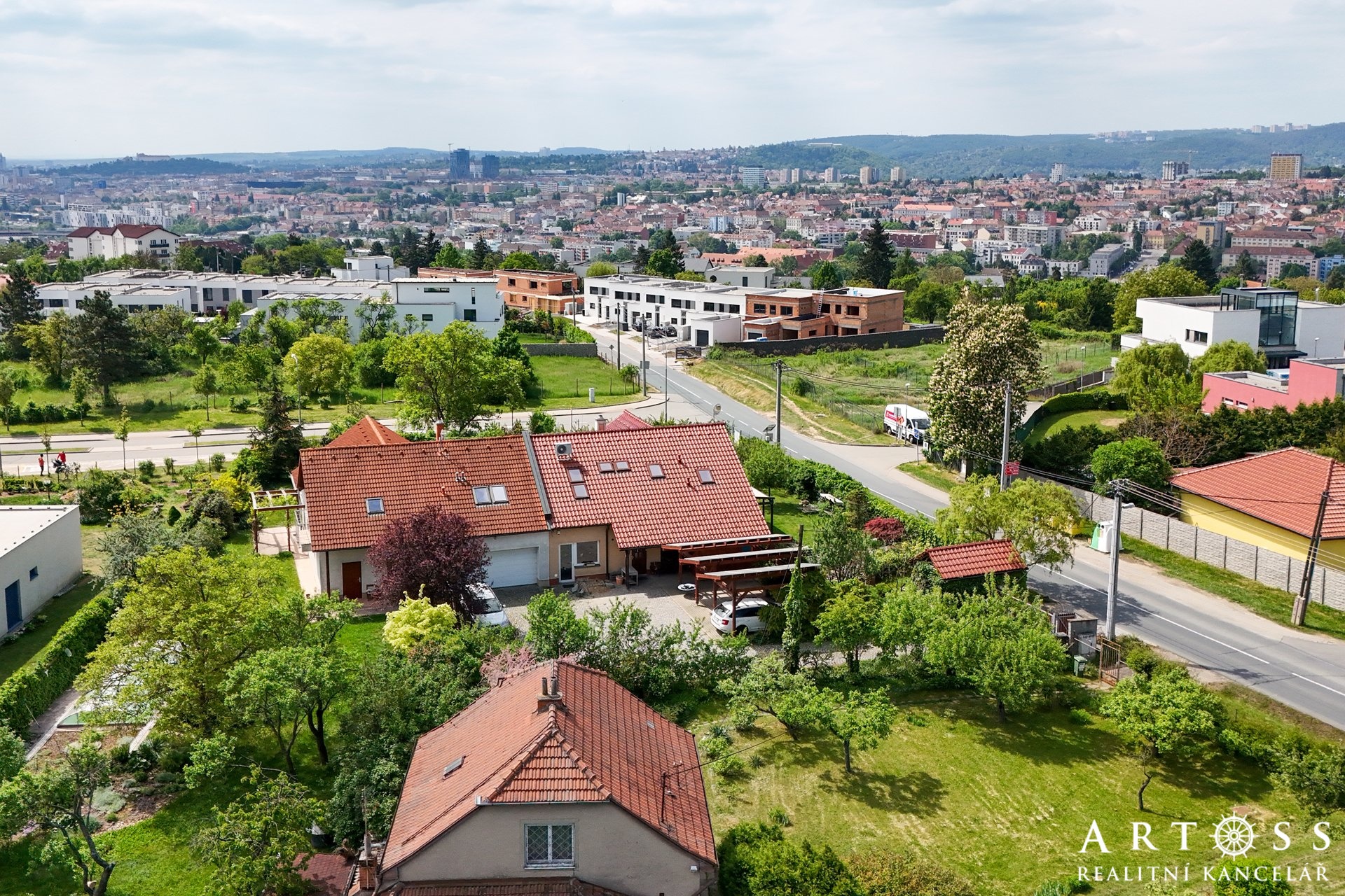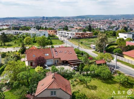 Prostorný rodinný dům 7+KK s velkým pozemkem a skvělou dostupností. Nabízíme k prodeji prostorný a prosluněný rodinný dům 7+KK o užitné ploše 176 m² s pozemkem 885 m². Dům je situován ve vyhledávané lokalitě s výbornou dostupností MHD a občanskou vybaveností v docházkové vzdálenosti. Hlavní výhody této nemovitosti: Velkorysý prostor, obytná část domu je orientována na jih, což zajišťuje dostatek denního světla. Jižním směrem je orientována i krásná zahrada s přírodním jezírkem, ovocnými stromy a vinnou révou. Je zde dostatek prostoru pro vybudování bazénu i hrací části pro děti. Ideální místo pro rodinu s dětmi. Ekologické a úsporné bydlení – dům je napojen na solární panely, k úspoře energie se nabízí možnost dobíjení elektromobilu na vlastním pozemku. Dům byl vybaven v roce 2023 novou klimatizací, v každém pokoji je jednotka. Kvalitní materiály – cihlová konstrukce se zateplením, betonové stropy a precizní provedení stavby. Možnost využití kancelářských prostor – část domu byla využívána jako projekční kancelář, kterou lze snadno přetvořit zpět na obytné místnosti. Výborná dopravní dostupnost – trolejbusová zastávka do 100 m, supermarket Albert 5 minut chůze. Velká zahrada a parkování – zahrada o rozloze 651 m², v přední části domu je kryté parkování pro více aut, kde je možné umístit třeba i karavan. Bezprostřední blízkost lesa a přírody. Dispozice domu: Přízemí: - Předsíň (5,3 m²) - Kuchyň (7,3 m²) - Obývací pokoj s jídelnou (34 m²) – vstup na terasu a zahradu - Pokoj (15,5 m²) - Kancelář (10,2 m²) - Koupelna (3 m²), samostatné WC (1,5 m²) - Schodiště (33,85 m²) Podkroví: - Pokoj (12,7 m²) - Pokoj (11,9 m²) - Pokoj (11,1 m²) - Kancelář (20,2 m²) - Koupelna s WC (5,6 m²) - Chodba (14,1 m²) - Samostatné WC (1,5 m²) Dům je ideální pro rodinu, podnikání i kombinaci obojího díky variabilnímu využití prostoru. Lokalita: Skvělá občanská vybavenost – zastávka MHD, supermarket, příroda a centrum města v dosahu. Doporučuji osobní prohlídku.