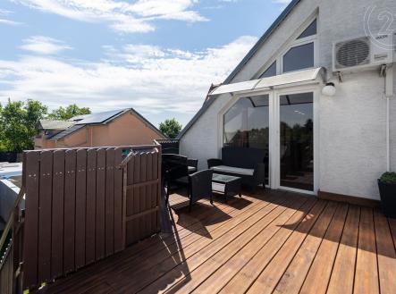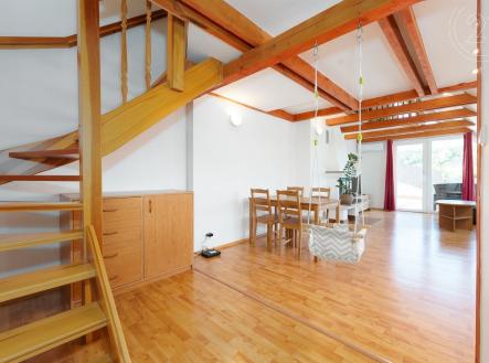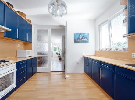 Prodej pěkného, rodinného domu se zahradou a terasou ul. Stránská, Brno Slatina. Dům je vhodný pro rodinné bydlení a současně i pro více generační bydlení. Kolaudace přízemí r. 2001 a mezonet r. 2021. Je situován v klidné, slepé ulici, v okolí rodinných domů a zahrad, vedle národní přírodní památky Stránská skála. Výborná poloha domu do centra města cca 10 min. MHD tram i bus a současně v blízkosti nájezdu na D1. Parkování možné na vlastním pozemku, nebo veřejné v ulici. V přízemí domu je kuchyňská linka s plynovým sporákem a elektrickou troubou, digestoří. Samostatné WC a koupelna s umyvadlem, sprchovým koutem a kombinovaným, plynovým kotlem na ohřev vody a vytápění. V domě jsou všechny IS. Prostorná obývací hala s jídelnou a krbem je orientována do zahrady s příjemným výhledem do zeleně. Součástí přízemí je i ložnice s vestavnými skříněmi a druhým obytným pokojem. Dům je z části podsklepen v domě jsou dva sklepy. Vinný, klenutý, cihlový sklep a sklep na zeleninu. Do patra domu, kde je umístěn mezonetový byt, je samostatný vstup přes zahradu, nebo je přístup po schodišti ze společné vstupní chodby domu. Moderní kuchyně s vestavnými spotřebiči (elektrická varná deska a trouba, myčka, digestoř) spolu s obytným prostorem a krbem tvoří jeho hlavní část. Z obytné části je přímý vstup na terasu s posezením a na zahradu. V této části podlaží je současně ložnice s koupelnou a WC, umyvadlem, sprchovým koutem a menší vanou pro děti. O patro výše po schodišti je pak knihovna s chodbou, dva pokoje a druhá koupelna s WC, umyvadlem a sprchovým koutem. Celý byt je klimatizován. Okna jsou plastová, střešní, euro okno do ulice s venkovním zastíněním a žaluziemi. Podlahy dlažba, plovoucí podlaha a linoleum. Dům má vjezd na pozemek z ulice a pěstěnou zahradu, která zve k posezení u grilu a k relaxaci. Náklady na energie jsou kolem 6.500, Kč/měsíc. PENB D. Zajišťujeme včetně financování a těšíme se na společnou prohlídku.