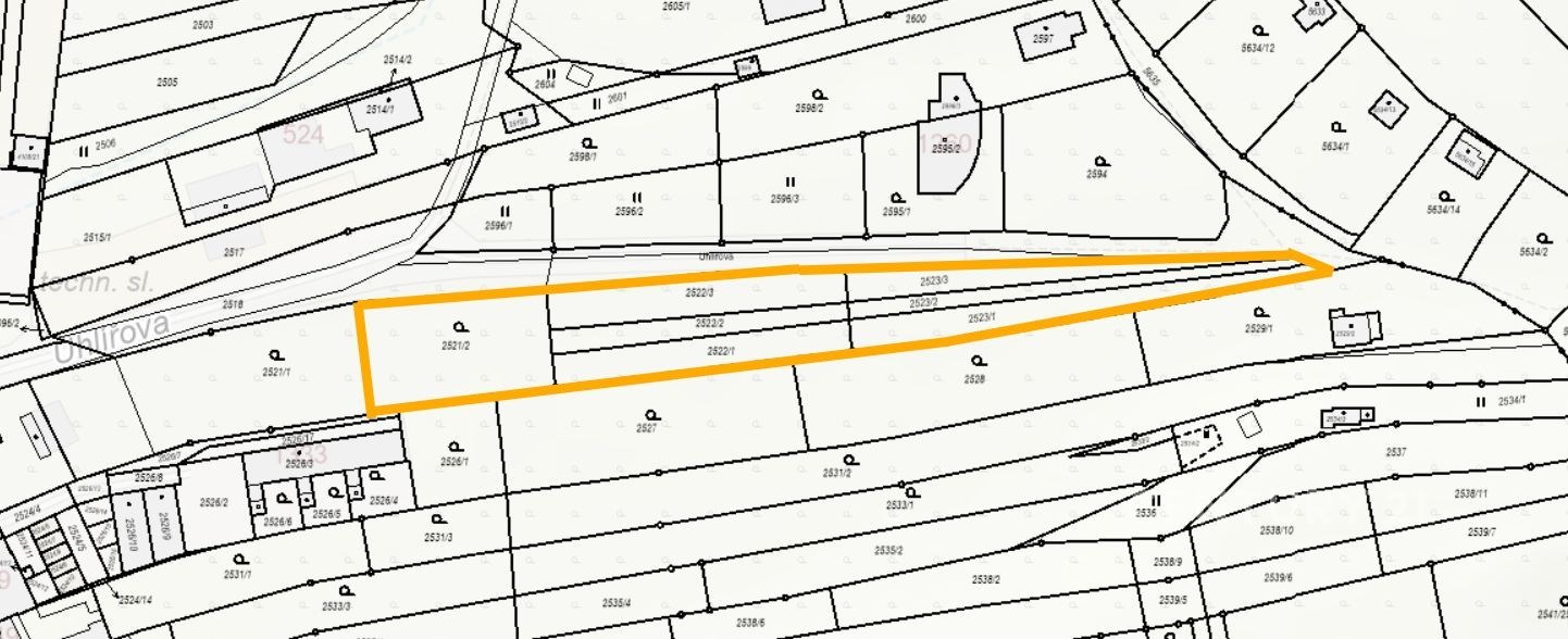 Prodej stavebního pozemku 2501 m², Brno – Komín, ul. Uhlířova
