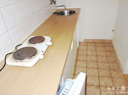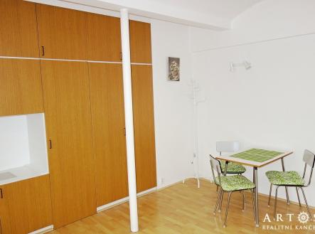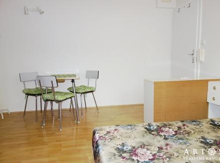 V zastoupení majitele nabízíme k pronájmu zařízený byt 1+kk. Jedná se o menší byt na 1.NP bytového domu. Vstupem do bytu se dostaneme do pokoje, ve který je vybaven postelí, stolem a židlemi, 2x malá komoda a úložnými prostory ve stěně. Možno i dodání TV. Kuchyně s kuchyňskou linkou, elektrickým vařičem a lednicí. Dále je zde koupelna se sprchovým koutem a WC a přípojkou na pračku. Byt má nová plastová okna. Byt je ideálně vhodný pro 1 osobu - . Majitel preferuje zájemce, kteří jsou nekuřáci a bez děti a domácích mazlíčků. nájemné 9.000,- + 4.500,- energie, voda a služby 13.500,- kauce. 13.500,- + DPH 21% provize Internet WIFI v ceně nájmu. Volné k nastěhování od: ihned