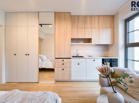 V samém srdci Brna, v oblíbeném projektu Pekárenský dvůr, vznikl prostor, který zaujme každého, kdo hledá spojení designu, funkčnosti a klidu. Tento kompaktní ateliér o velikosti 23 m² je dokonale promyšlený do posledního detailu – každý centimetr tu má svůj smysl. Interiér působí lehce, harmonicky a příjemně teple díky kombinaci přírodního dřeva, světle šedých tónů a jemného ambientního osvětlení. Kuchyňská linka je plně vybavená vestavnými spotřebiči, nechybí indukční varná deska, trouba, digestoř ani chladnička. Promyšlené úložné prostory přirozeně navazují na obytnou zónu s pracovním koutem, který působí elegantně i prakticky zároveň. Koupelna vás překvapí svou kvalitou – obklad v kamenném dekoru, sprchový kout se skleněnou zástěnou, designové kulaté zrcadlo s podsvícením a umývadlo na dřevěné skříňce tvoří příjemnou kombinaci moderního wellness stylu. Celý projekt Pekárenský dvůr je koncipován jako uzavřený rezidenční areál s důrazem na soukromí, komfort a komunitní atmosféru. Obyvatelé mohou využívat 24/7 recepci a concierge služby, privátní wellness centrum (finská sauna, masérna, jógová zóna), fitness zónu i venkovní workout hřiště, cowork lounge pro klidnou práci nebo meetingy a také řemeslnou kavárnu s pekárnou přímo v areálu. Pekárenský dvůr nabízí životní styl – ne jen bydlení. Ideální pro ty, kdo chtějí být v centru dění, a přitom si uchovat pocit klidu a zázemí. Vhodné pro jednotlivce a páry. Parkovací stání je možné pronajmout v garážích domu za cenu 2 500 Kč. Volné ihned. Tento byt je podnajímán se službou „Váš Domácí“. Co je to služba „Váš Domácí“? Je to služba, kdy podnájemce automaticky získává: - plně pojištěný byt s non stop asistenční linkou, kdy pojištění se vztahuje i na odpovědnost za škody způsobené v běžném životě, prodlouženou záruku spotřebičů o 2 roky, a nebo servisní techniky v případě pojistné události (práce zámečníka, opravy havárií). - zákaznický servis služby „Váš Domácí“ od 9:00 – 17:00 pro řešení Vašich dotazů a požadavků - technickou podporu (pro případ, že budete chtít pomoci s technickými záležitostmi na bytě) - všechny platby na jednom místě (elektřina, plyn…), už nikdy žádné přepisování a upisování distributorům a poskytovatelům internetu, s ukončením podnájmu končí automaticky všechny poskytované služby - možnost výměny bytu za větší/menší/jinde z portfolia bytů Váš Domácí (Brno, Praha a další města) Podnajmout si byt nebylo nikdy snazší a efektivnější. Toto je služba Váš Domácí.