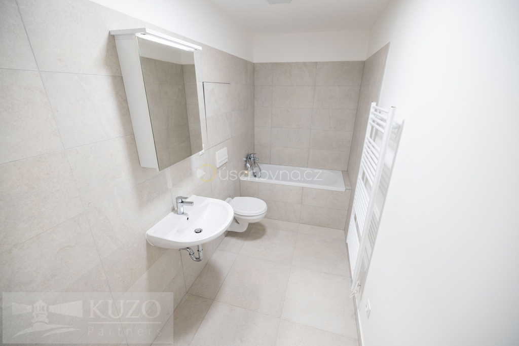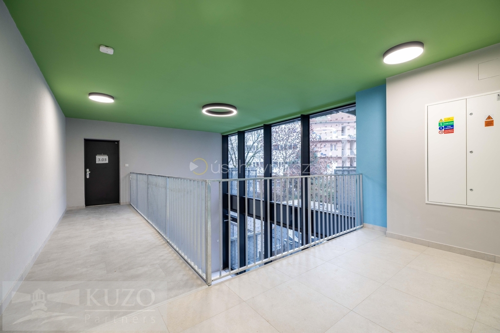 Pronájem bytu 1+kk, 32,1 m², 6. NP – novostavba, Auerswaldova, Brno-sever Ve výhradním zastoupení majitele nabízíme stylový pronájem 1+kk, v domě je společná kolárna a placená garážová parkovací stání – nový byt, nová energie, nový domov v novostavbě na ulici Auerswaldova č.8, v dynamicky se rozvíjející části Brno–Zábrdovice. Moderní byt 1+kk o celkové ploše 32,1 m², je situovaný v 5. patře novostavby s výtahem na ulici Auerswaldova, Brno-sever. Byt má velmi praktickou dispozici: obytný pokoj s kuchyňským koutem 20,5 m² prostorná koupelna 5,7 m² vstupní chodba 4,7 m² Byt je umístěn v 6. nadzemním podlaží novostavby s výtahem. výhoda prvního nájemníka – vše nové, nepoužité, připravené pro vás. Slunný prostor s atmosférou moderního městského bydlení. Koupelna je vybavena vanou, toaletou, umyvadlem se zrcadlovou skříňkou, otopným žebříkem a přípojkou na pračku. Celý prostor je laděn v čistém, moderním designu, který podtrhuje svěžest novostavby. V bytě je podlahové vytápění, elegantní vinylové podlahy, rekuperace v pobytových místnostech a velkoformátová okna s trojskly. Nízké provozní náklady zajišťuje PENB třídy B. Možností pronájmu je garážové stání přímo v domě, viz. foto. Cena 2.500,- Kč/měsíc. Internetové připojení – v bytové jednotce jsou internetové rozvody (kabeláž + zásuvky), jejich připojení k příslušnému provideru internetu si zajistí a hradí nájemce. Bytový dům se nachází v části Zábrdovice s výbornou dostupností do centra města. V okolí je veškerá občanská vybavenost – zastávky MHD, obchody, kavárny, fitness centrum. Ideální místo pro páry hledající moderní a komfortní dlouhodobé bydlení blízko centra Brna. Dopravní dostupnost je skvělá, s rychlým napojením na městský okruh a do všech částí města. Prohlídka je možná po domluvě s uvedeným makléřem.