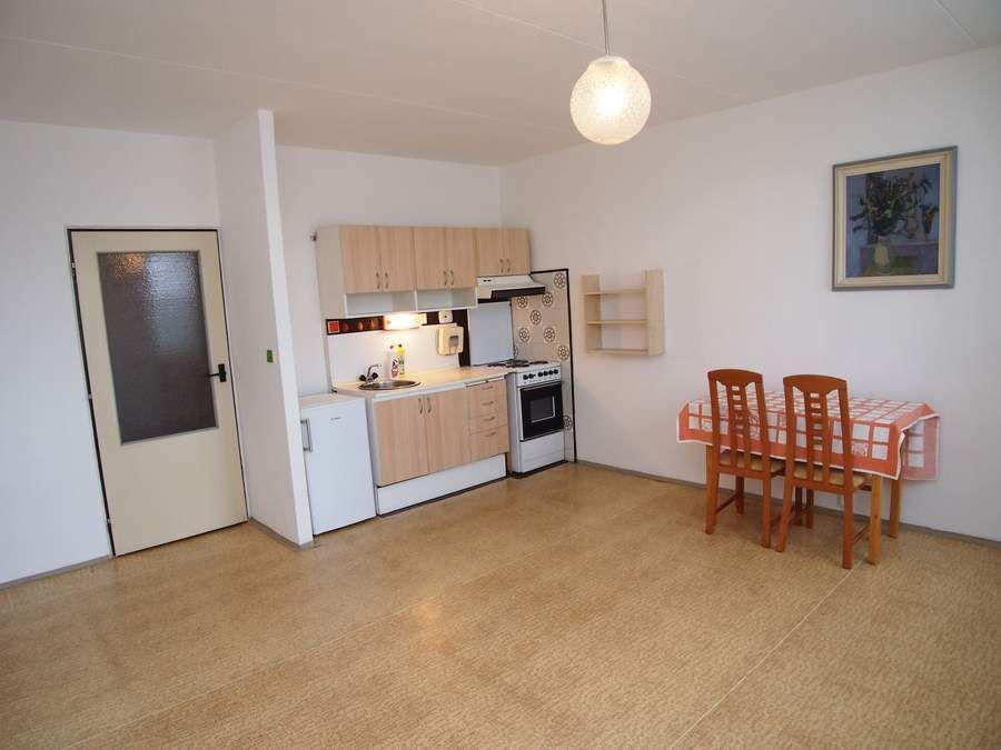 Nabízíme pronájem panelového bytu 1+kk, Brno - Vinohrady, ul. Prušánecká. Byt o celkové ploše 33m2, v 5.patře/11 v domě s výtahem. Dům je po celkové revitalizaci, je zateplený, má nová plastová okna, výtahy, stoupačky... Byt je částečně zařízený (viz foto), v kuchyni starší linkou s lednicí, el. sporák s troubou, stolek, židle, v koupelně pračka, v předsíni vestavěné skříně + samostatná skříň. Jádro je původní umakartové. K bytu náleží sklepní kóje o velikosti cca 2m2. Možnost internetu - v bytě je přípojka od Vodafone. Byt je vhodný pro páry i jednotlivce, nekuřáky bez malých dětí a bez domácích mazlíčků. Zálohy na energie a služby 1.164,-Kč/měs. Elektřina se přepisuje na nájemníka, můžete si tak stonovit zálohovou platbu dle vlastní úvahy. Přepoklad 600 - 800 Kč/měs. Vratná kauce 1 nájem. Volný od ledna. Prohlídka možná po dohodě na tel nebo na e-mailu.