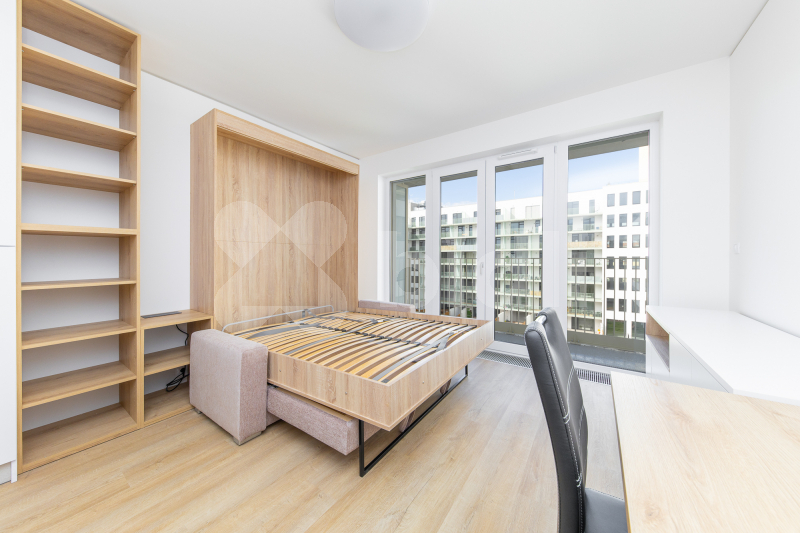 Pokud hledáte moderní bydlení v samotném centru Brna, kde máte vlakové i autobusové nádraží doslova na dosah a veškeré obchody a služby v bezprostředn ím okolí, tato nabídka je pro vás. K pronájmu nabízím byt 1+kk s balkonem a sklepem v 6. patře bezbariérové novostavby Rezidence Palác Trnitá, která je střežena ostrahou. Byt má podlahovou plochu 27 m2 a balkon o výměře 6 m2. Jako nájemce oceníte kompletně vybavenou kuchyňskou linku se spotřebiči (myčka, indukční varná deska, trouba, lednice s mrazákem, pračka), vestavěné skříně, postel a elektrické před okenní žaluzie. Součástí domu je také klidný vnitroblok se zahradou, kterou lze využívat. Lokalita je ideální pro ty, kteří chtějí rychlou dostupnost do centra i na dopravu: v pěší vzdálenosti je OC Galerie Vaňkovka, hlavní vlakové nádraží i autobusové nádraží a veškerá občanská vybavenost. Nájemné činí 16 500 Kč měsíčně + 2 500 Kč zálohy na služby. Elektřina se převádí na nájemce. V případě zájmu o více informací nebo domluvení prohlídky mě neváhejte kontaktovat.
