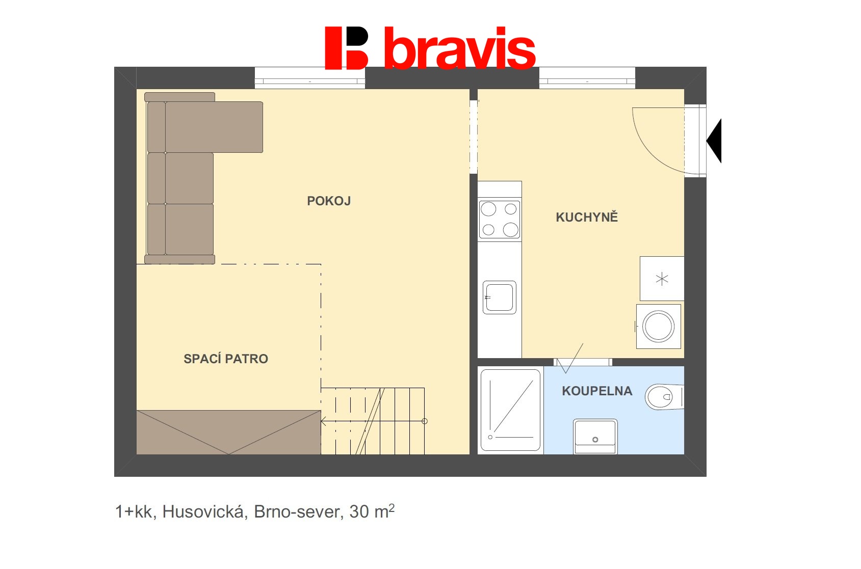 Ve výhradním zastoupení majitele nabízíme k dlouhodobému pronájmu částečně zařízený byt o dispozici 1+kk na ulici Husovická v Brně. Byt se nachází v 1. patře cihlového domu. Celková plocha bytu je 30 m2. Byt je vhodný pro 1-2 osoby. Kuchyňská část pokoje je vybavena linkou s varnou deskou, lednicí a mrazákem. V kuchyni se nachází také pračka. Obývací část pokoje má velice praktické řešení. Je vybavena spací galerií, která má dostatek úložného prostoru. Spací část je bez matrace. V pokoji se nachází rozkládací sedací souprava. V koupelně je toaleta, umyvadlo a sprchový kout. Výhled z oken je do klidného vnitrobloku s venkovními žaluziemi. Možnost připojení k internetu a TV. V kuchyňské části je položena vinylová podlaha a v obývací části je koberec. V okolí najdete veškerou občanskou vybavenost, restaurace, obchody a dobré dopravní spojení do centra města. Parkování je možné v přilehlých ulicích, zóna C. Prohlídky jsou možné kdykoliv po domluvě s uvedeným makléřem. Možnost zajištění jednorázového či pravidelného úklidu naší úklidovou firmou.