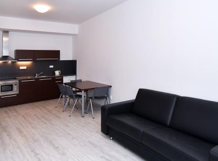 Kompletně zařízený byt. Pronájem na dobu od jednoho měsíce. Možnost pronájmu parkovacího místa za 1 700 Kč Možnost pronájmu pračky za 500 Kč. V případě pronájmu firmě, možnost odpočtu DPH. Pro studijní i pracovní pobyty nabízíme pronájem plně zařízeného bytu 2+kk včetně kuchyňské linky a elektrospotřebičů v hotelovém komplexu eFi Palace Hotel v centru Brna. V rámci uzavřeného hotelového komplexu Vám bude k dispozici také fitness, wellness, restaurace, venkovní bazén a parkování na hlídaném parkovišti. Pronájem bytu je možný již od jednoho měsíce až po dobu jednoho roku. Nájemcem může být fyzická osoba či firma. Plátci daně mohou využít odečtu DPH. Odjíždíte na léto domů? Nevadí, byt uvolníte na letní období, ve kterém nebudete nic platit, a od podzimu se můžete znovu nastěhovat do stejného bytu. Byty 2+kk jsou o výměře 45,09 až 46,3 m2 a nacházejí se ve 2.-5. podlaží. Budova je opatřena výtahem i schodištěm Byt má vstupní chodbu vybavenou vysokou šatní skříní s celoplošným zrcadlem a pokojovým trezorem. Dále byt disponuje obývací částí s rozkládací sofa, moderní vybavenou kuchyňskou linkou s pracovní deskou, podstavnou lednicí Indesit, vestavěnou mikrovlnou trouba s grilem a horkovzdušnou troubou, varnou konvicí a jídelní soupravou s nádobím pro 4 osoby. Pokoj je vybavený jídelním stolem se 4 židlemi, pracovním stolem s kancelářskou židlí a smart TV. Ložnice je samostatná se 2 komfortními postelemi a šatní skříní. Podlaha je vinylová, nebo s kobercem. Koupelna je s vanou, umyvadlem, wc a topným žebříkem. WiFi připojení se standardní rychlostí dat je již v ceně pronájmu. V ceně měsíčního nájmu je kalkulována paušálně i cena za odběr elektřiny, vody a topení. Cena měsíčního nájmu zahrnuje úklid společných prostor a pronájem povlečení s jejich výměnou v rozsahu jedenkrát měsíčně. Je požadovaná vratná kauce ve výši jednoho až dvou nájmů dle délky ubytování. Dlouhodobě ubytovaní nájemci mají v komplexu eFi Palace Hotelu zvýhodněný vstup do hotelového wellness a fitness centra. Nabídka je vhodná pro pracovní či studijní pobyty, a to zejména pro oborové specialisty, vytížené vedoucí pracovníky, obchodní zástupce, podnikatelé či studenty vysokých škol. Skvělá dostupnost do centra Brna za necelých 10 minut pěší chůze nebo dvě zastávky MHD. Prohlídky bytů možné kdykoli po předchozí domluvě. Neplatíte provizi za zprostředkování pronájmu!