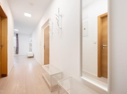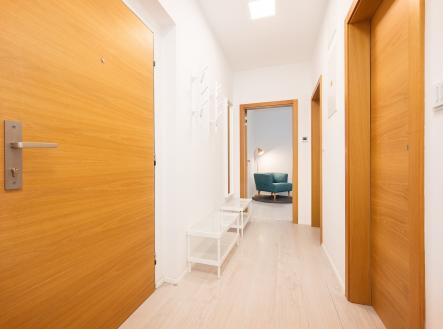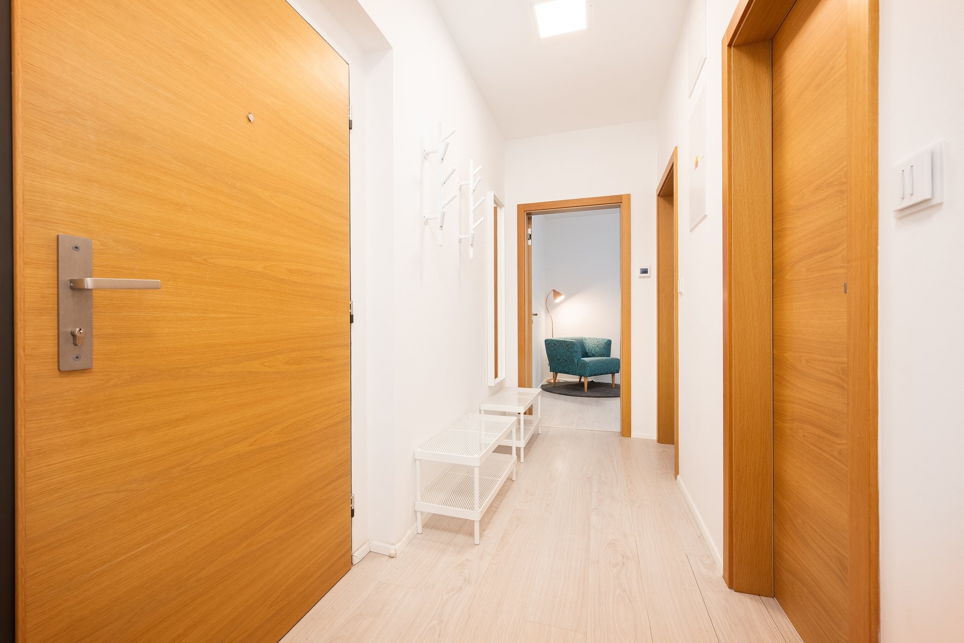 Hledáte moderní byt s rychlou dostupností centra Brna, přitom v klidné lokalitě u řeky a cyklostezky, s balkonem a podzemním parkovacím stáním? K pronájmu je byt o dispozici 2+kk, podlahové ploše 51 m², s balkonem o velikosti 6 m², sklepní kójí 3,7 m² a krytým podzemním parkovacím místem. Byt se nachází ve 2. nadzemním podlaží cihlového domu bez výtahu z roku 2018 na ulici Grmelova v městské části Brno-Štýřice. Po vstupu do bytu se nachází předsíň s botníkem a věšákem, která slouží jako centrální rozcestí bytu. Z předsíně je vstup do obývacího pokoje s kuchyňským koutem, který tvoří hlavní obytný prostor. Obývací část je vybavena rohovou sedací soupravou, jídelním stolem a čtyřmi židlemi. Kuchyňská linka na míru je kompletně osazena sklokeramickou varnou deskou, vestavnou troubou, odsavačem par, myčkou, lednicí s mrazákem, dřezem, kuchyňskou baterií a LED podsvícením. Z obývacího pokoje je přímý vstup na balkon, orientovaný do klidného vnitrobloku. Z boční strany se nachází okolní zástavba, čelním směrem je otevřený výhled na hrad Špilberk. Balkon je vybaven dvěma dřevěnými židlemi a venkovním stolem a nabízí příjemné místo pro posezení. Z předsíně je dále přístupná koupelna spojená s WC, vybavená walk-in sprchovým koutem, umyvadlem, zrcadlem a pračkou. Ohřev teplé vody je zajištěn vlastním elektrickým bojlerem. Bezprostředně vedle koupelny se nachází samostatná komora s vestavěným úložným systémem na míru, vhodná pro oblečení a další domácí potřeby. Další dveře z předsíně vedou do samostatné ložnice, která je vybavena manželskou postelí, dvěma nočními stolky s lampičkami a doplněna křeslem se stojací lampou. Byt odpovídá moderním požadavkům na bydlení: podlahové elektrické vytápění, sádrové omítky, dýhované bezfalcové dveře Sapeli s magnetickým zámkem, izolační trojskla a elektricky ovládané předokenní rolety ve všech oknech. K bytu náleží sklepní kóje o velikosti 3,7 m². Za domem je k dispozici společná zahrada určená výhradně pro obyvatele domu. Byt je vhodný pro jednotlivce nebo pár hledající kvalitní a klidné bydlení v širším centru města a je volný od 15.2.2026. ________________________________________ • Nájemné: 23.000 Kč / měsíc • Zálohy na energie a služby: 3.000 Kč / měsíc • Celkové měsíční náklady: 26.000 Kč • Vratná kauce: 30.000 Kč • Provize realitní kanceláře: 26.000 Kč včetně DPH ________________________________________ Lokalita nabízí výbornou dopravní dostupnost – centrum města je v dosahu několika minut, stejně jako napojení na D1, D2 a městský okruh. V bezprostřední blízkosti domu vede cyklostezka podél řeky Svratky a okolí poskytuje dostatek zeleně i klid pro bydlení.