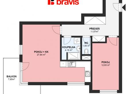 Pronájem bytu 2+kk, Brno - Medlánky, ulice K Babě, balkón, internet v ceně