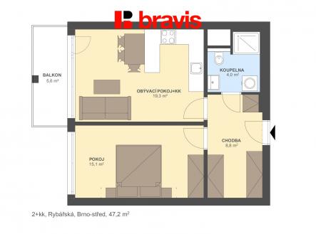 Ve výhradním zastoupení majitele nabízíme k dlouhodobému pronájmu byt o dispozici 2+kk na ulici Rybářská ve Starém Brně. Jednotka se nachází v 6. patře nového bytového domu s výtahem. Celková plocha jednotky je 47,2 m2. Byt je vhodný pro 1-2 osoby. Kuchyňská část je vybavena kuchyňskou linkou včetně lednice s mrazícím boxem, trouby, mikrovlnné trouby, indukční varné desky, digestoře a myčky. Obývací část pokoje nabízí možnost vybavení podle vlastních představ. Z obývací části je vstup na balkon o velikosti 5,6 m2. Koupelna je vybavena toaletou, sprchovým koutem, umyvadlem, zrcadlem, přípojkou na pračku a otopným žebříkem. V chodbě se nachází vestavná skříň, botník a věšák. Byt je vybaven klimatizací a venkovními žaluziemi. Možnost pronájmu garážového stání za 2.000,- Kč/měsíc. K bytu náleží sklepní kóje o velikosti 3,5 m2. V srdci Starého Brna, v Rybářské ulice se nabízí kompletní občanskou vybavenost: v pěší dostupnosti najdete supermarkety, kavárny a restaurace, služby a obchody, školy i zdravotní zařízení, parky a zeleň u řeky, a díky výborné dostupnosti MHD i rychlé spojení do centra města. Prohlídky jsou možné po domluvě s níže uvedeným makléřem. V případě Vašeho zájmu Vám můžeme nabídnout online prohlídku nemovitosti. Možnost zajištění jednorázového nebo pravidelného úklidu naší úklidovou firmou.