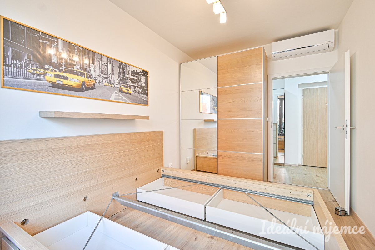 K dlouhodobému pronájmu nabízíme byt o dispozici 2+kk v moderním bytovém domě na adrese Mojmírovo náměstí, Brno. Byt o celkové výměře 44 m² se nachází v 1. patře s terasou. Dispozičně je byt řešen jako obývací pokoj s kuchyňským koutem, samostatná ložnice, koupelna a předsíň. Vybavení zůstavá dle fotografií. Kuchyňská linka je moderní a plně vybavená spotřebiči. Velkým benefitem bytu je klimatizace a venkovní žaluzie, které zajišťují komfort, soukromí a příjemné klima. Součástí nabídky je také garážové stání, které je již zahrnuto v ceně nájmu. Dům se nachází v dobře dostupné části Brna s veškerou občanskou vybaveností v okolí, včetně MHD, obchodů, služeb i možností pro volnočasové aktivity. Byt je vhodný pro jednotlivce nebo pár, kteří hledají moderní bydlení s výbornou dostupností a bez dalších skrytých nákladů.