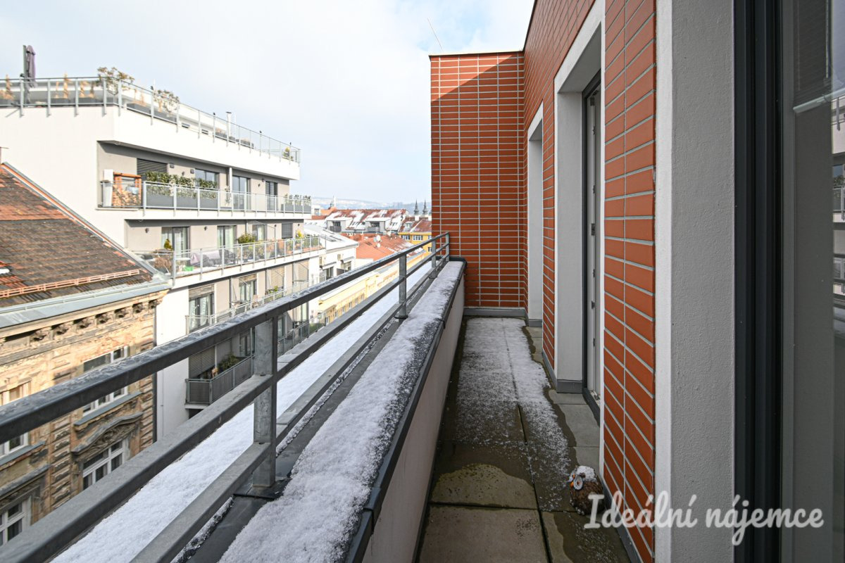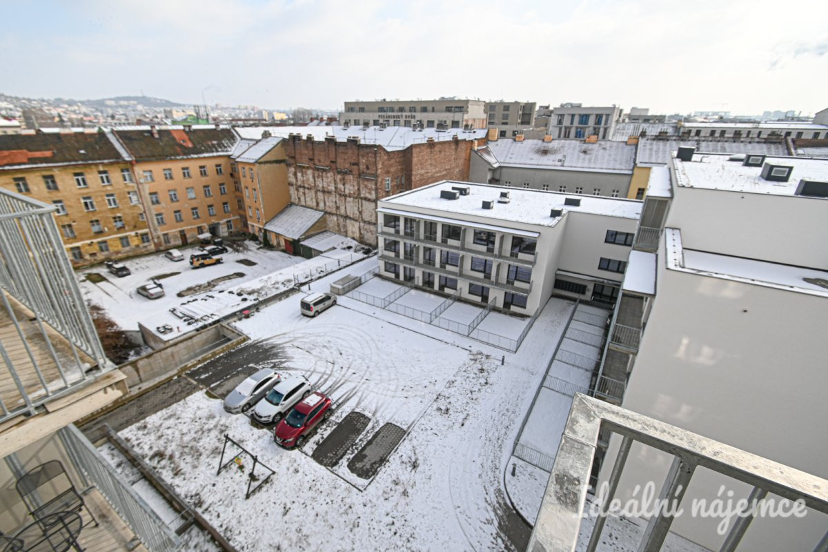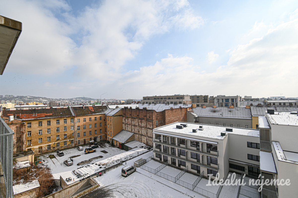 Nabízíme k pronájmu moderní byt o dispozici 2+kk a velikosti 52 m², který se nachází v 7. podlaží bytového domu na ulici Spolková. K bytu náleží dvě prostorné lodžie a garážové parkovací stání, které je možné pronajmout za 2000 Kč. Byt je nezařízený a tvoří jej vstupní předsíň, komora, koupelna se sprchovým koutem, umyvadlem a topným žebříkem, samostatná toaleta a technická místnost s pračkou. První pokoj disponuje balkonem, zatímco druhý pokoj s kuchyňským koutem má přístup na druhý balkon. Kuchyň je vybavena elektrickou troubou, varnou deskou s digestoří, lednicí s mrazákem a myčkou nádobí. Lokalita nabízí výbornou občanskou vybavenost a skvělou dopravní dostupnost. V okolí se nachází obchody, restaurace, kavárny i zdravotní střediska. Díky blízkosti MHD je centrum Brna dostupné během několika minut. Nedaleko jsou také parky a rekreační zóny, které poskytují ideální místo pro volný čas a sportovní aktivity. Tento byt je ideální volbou pro ty, kteří hledají moderní bydlení s komfortním parkováním v blízkosti centra města.