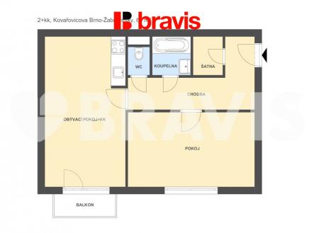 Pronájem bytu 2+kk v Brně - Žabovřeskách, ul. Kovařovicova, balkon, parkovací stání, komora, sklep