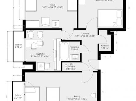 Pronájem bytu 3+1, Fryčajova, Obřany, 20 000 Kč/měs, 71 m2