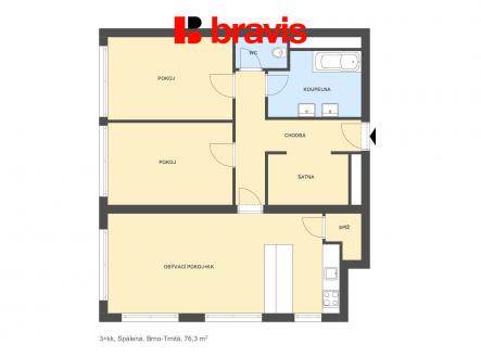 Pronájem bytu 3+kk, ulice Spálená, Brno - Trnitá, zařízený, výtah, možnost garážového stání, v blízk