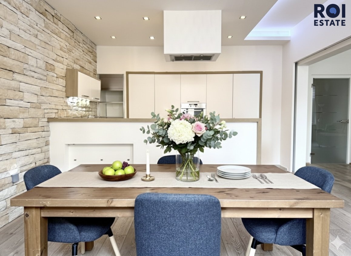 Hledáte výjimečný byt v centru Brna, který spojuje noblesu historického bydlení s pohodlím moderního interiéru? Tento nadstandardní byt 4+kk vás nadchne svou atmosférou, prostorem, designem i umístěním. Nachází se v cihlovém domě na ulici Údolní 34 – v docházkové vzdálenosti od samotného centra, ale v absolutním klidu s výhledem do zeleně. Výborná dostupnost MHD (zastávka přímo u domu), park Kraví hora jen pár kroků, stejně jako kavárny, obchody, školy i sportoviště. Základní informace: Dispozice a výměra: 4+kk, prostorné pokoje, velká vstupní hala, šatna, samostatné WC, koupelna s vanou i sprchovým koutem Patro a orientace: 2. patro s výtahem, okna do klidného vnitrobloku Vybavení bytu: kuchyňská linka s velkým množstvím úložných prostor vestavěné spotřebiče nejvyšší kvality včetně varné desky, trouby, myčky a lednice dvě chladničky (klasická a na víno/nápoje) integrovaný kávový koutek s možností skrytí barový pult s návazností na jídelní prostor pračka a sušička ve vyhrazeném místě kvalitní postel Hästens, designová svítidla, vestavěné skříně, stylová šatna vše uvedené vybavení je součástí podnájmu dle přání majitele Balkon/terasa/sklep/komora: byt je bez balkonu; velká komora je přímo součástí bytu Parkování: v modrých zónách přímo u domu Podmínky pro domácí mazlíčky: Domácí mazlíčci jsou povoleni po předchozí domluvě Dostupnost: byt je k dispozici od února 2026