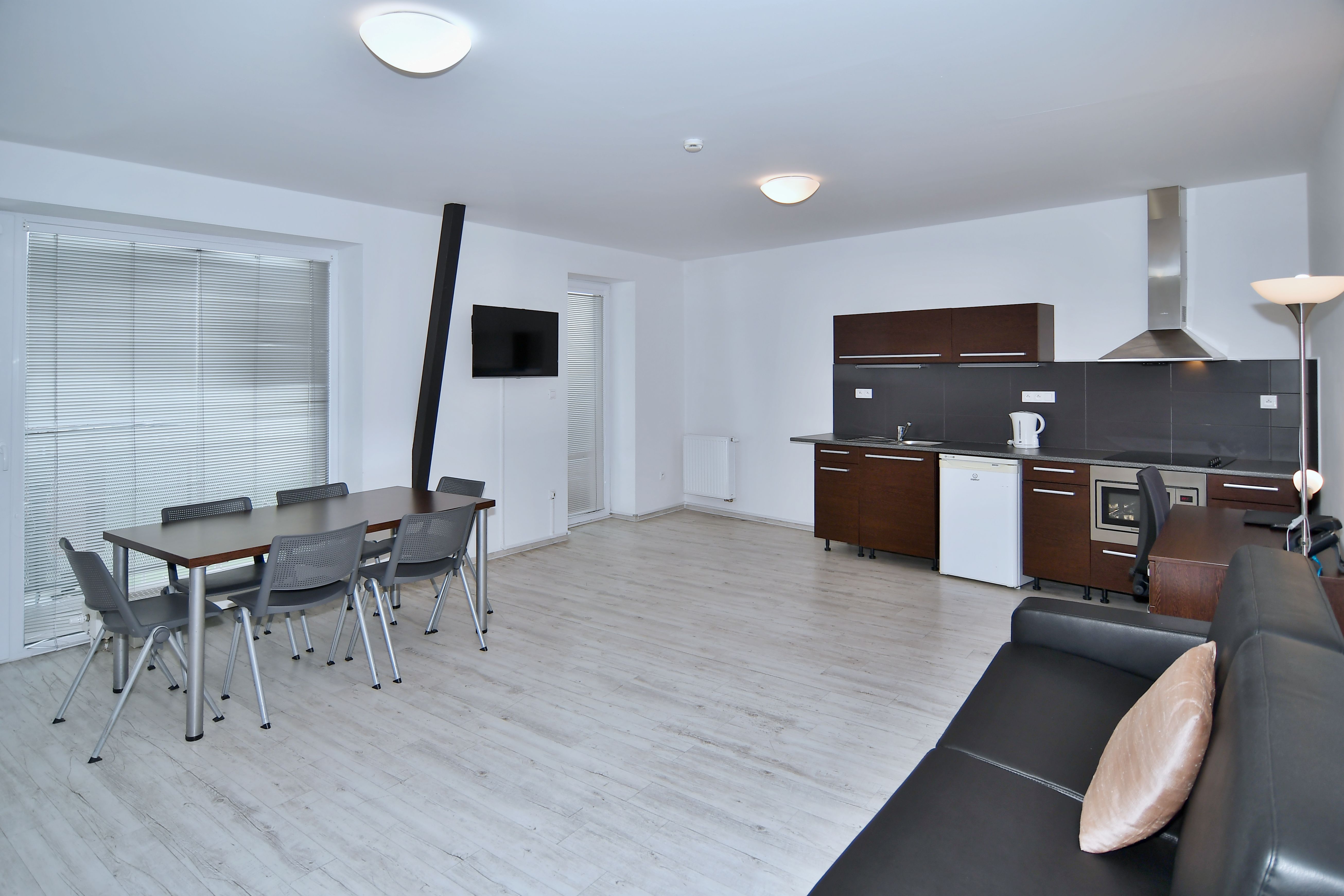 Kompletně zařízený byt. Pronájem na dobu od jednoho měsíce. Možnost pronájmu parkovacího místa za 1 700 Kč. Možnost pronájmu pračky za 500 Kč měsíčně. V případě pronájmu firmě, možnost odpočtu DPH. Pro studijní i pracovní pobyty nabízíme pronájem plně zařízeného bytu 4+kk včetně kuchyňské linky a elektrospotřebičů v hotelovém komplexu eFi Palace Hotel v centru Brna. V rámci uzavřeného hotelového komplexu Vám bude k dispozici také fitness, wellness, restaurace, venkovní bazén a parkování na hlídaném parkovišti. Pronájem bytu je možný již od jednoho měsíce až po dobu několika let. Nájemcem může být fyzická osoba či firma. Plátci daně mohou využít odečtu DPH. Odjíždíte na léto domů? Nevadí, byt uvolníte na letní období, ve kterém nebudete nic platit, a od podzimu se můžete znovu nastěhovat do stejného bytu. Byt je o výměře 162 m2 a nachází se v 5. podlaží. Budova je opatřena výtahem i schodištěm. Byt má vstupní chodbu vybavenou šatní skříní, celoplošným zrcadlem a pokojovým trezorem. Z předsíně je vstup na samostané WC. Dále byt disponuje obývací částí s moderní vybavenou kuchyňskou linkou s pracovní deskou, podstavnou lednicí indesit, vestavěnou mikrovlnou trouba s grilem a horkovzdušnou troubou, varnou konvicí a jídelní soupravou s nádobím pro 6 osob. Pokoj je vybavený jídelním stolem se 6 židlemi, pracovním stolem s kancelářskou židlí a smart TV. Z pokoje je vstup na balkon. V horním patře se nachází dvě samostatné ložnice, v každé z nich jsou dvě komfortní postele, šatní skříň a pracovní stůl s židlí. Z obou ložnic je přístup na prostornou terasu s posezením a výhledem na Petrov a Špilberk. Koupelna v horní části je s rohovou vanou, umyvadlem, bidetem, WC a topným žebříkem. WiFi připojení je v ceně pronájmu. Celý byt je kompletně klimatizován a vybaven klimatizačními jednotkami značky Samsung včetně dálkového ovládání. V ceně měsíčního nájmu je kalkulována paušálně i cena za odběr elektřiny, vody a topení. Cena měsíčního nájmu zahrnuje úklid společných prostor a pronájem povlečení s jejich výměnou v rozsahu jedenkrát měsíčně. Možnost pronájmu parkovacího stání v areálu komplexu je za 1 700 Kč měsíčně. Možnost pronájmu pračky umístěné v bytě za 500 Kč měsíčně. Je požadovaná vratná kauce ve výši jednoho až dvou nájmů dle délky ubytování. Nabídka je vhodná pro pracovní či studijní pobyty, a to zejména pro oborové specialisty, vytížené vedoucí pracovníky, obchodní zástupce, podnikatelé či studenty vysokých škol. Skvělá dostupnost do centra Brna za necelých 10 minut pěší chůze nebo dvě zastávky MHD. Prohlídky bytů možné kdykoli po předchozí domluvě. Neplatíte provizi za zprostředkování pronájmu!