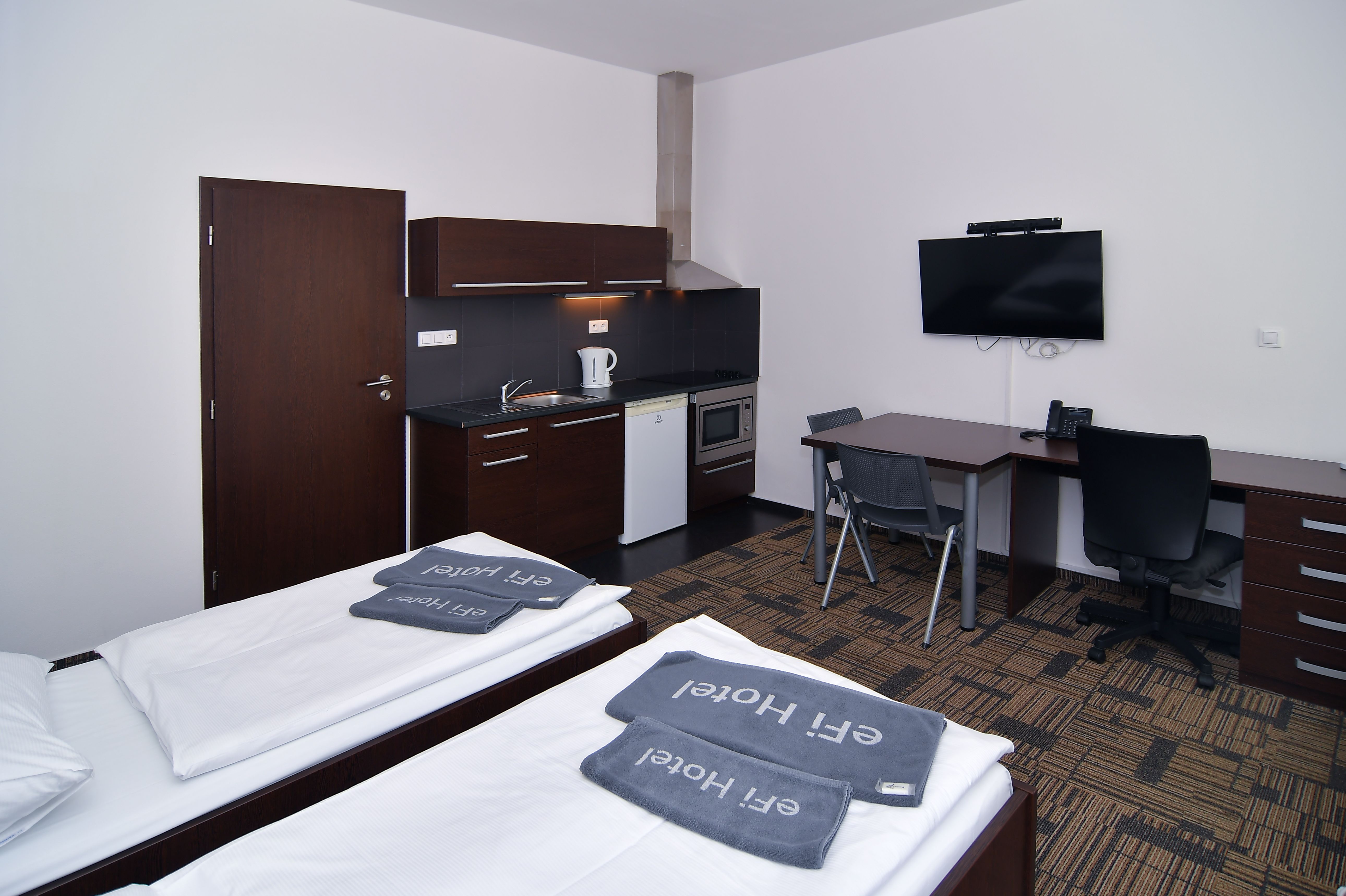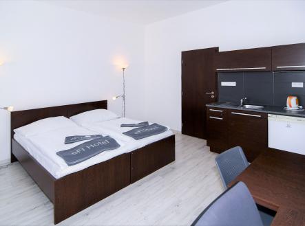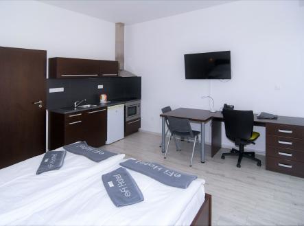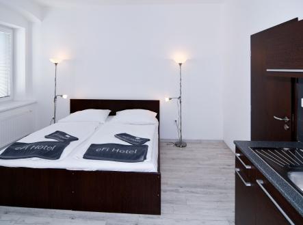 Kompletně zařízený byt. Pronájem na dobu od jednoho měsíce. Možnost pronájmu parkovacího místa za 1 700 Kč. Možnost pronájmu pračky za 500 Kč. V případě pronájmu firmě, možnost odpočtu DPH. Pro studijní i pracovní pobyty nabízíme pronájem plně zařízeného bytu 1+kk včetně kuchyňské linky a elektrospotřebičů v hotelovém komplexu eFi Palace Hotel v centru Brna. V rámci uzavřeného hotelového komplexu Vám bude k dispozici také fitness, wellness, restaurace, venkovní bazén a parkování na hlídaném parkovišti. Pronájem bytu je možný již od jednoho měsíce až na dobu jednoho roku. Nájemcem může být fyzická osoba či firma. Plátci daně mohou využít odečtu DPH. Odjíždíte na léto domů? Nevadí, byt uvolníte na letní období, ve kterém nebudete nic platit, a od podzimu se můžete znovu nastěhovat do stejného bytu. Byty 1+kk jsou o výměře od 26 do 38 m2 m2 a nacházejí se ve 2.-5. podlaží. Budova je opatřena výtahem i schodištěm. Jednotka je vybavena klimatizační jednotkou značky Samsung včetně dálkového ovládání. Byt má vstupní chodbu vybavenou vysokou šatní skříní s celoplošným zrcadlem a pokojovým trezorem. Dále byt disponuje obývací částí s komfortními postelemi 90 x 200 cm, moderní vybavenou kuchyňskou linkou s pracovní deskou, podstavnou lednicí Indesit, vestavěnou mikrovlnou trouba s grilem a horkovzdušnou troubou, varnou konvicí a jídelní soupravou s nádobím pro 2 osoby. Pokoj je vybavený jídelním stolem se 2 židlemi, pracovním stolem s kancelářskou židlí a smart TV. Koupelna je s buď s vanou, nebo sprchovým koutem, umyvadlem, wc a topným žebříkem. WiFi připojení se standardní rychlostí dat je již v ceně pronájmu. K ceně měsíčního nájmu je nutné započíst i cenu za odběr elektřiny, vody a topení. Cena měsíčního nájmu zahrnuje úklid společných prostor a pronájem povlečení s jejich výměnou v rozsahu jedenkrát měsíčně. Možnost pronájmu parkovacího stání v areálu komplexu je za 1 700 Kč měsíčně. Možnost pronájmu pračky umístěné v bytě za 500 Kč měsíčně. Je požadovaná vratná kauce ve výši jednoho až dvou nájmů dle délky ubytování. Dlouhodobě ubytovaní nájemci mají v komplexu eFi Palace Hotelu zvýhodněný vstup do hotelového wellness a fitness centra. Nabídka je vhodná pro pracovní či studijní pobyty, a to zejména pro oborové specialisty, vytížené vedoucí pracovníky, obchodní zástupce, podnikatelé či studenty vysokých škol. Skvělá dostupnost do centra Brna za necelých 10 minut pěší chůze nebo dvě zastávky MHD. Prohlídky bytů možné kdykoli po předchozí domluvě. Neplatíte provizi za zprostředkování pronájmu!