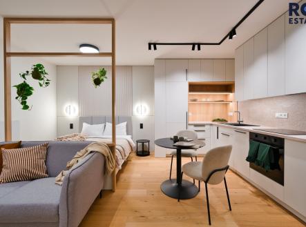 Bydlení, kde klid dýchá ze všech detailů! Nabízíme k podnájmu výjimečný byt 1+kk o celkové ploše 42 m² s balkonem a sklepem, který vznikl v duchu wellbeing stylu – s důrazem na harmonii, světlo a kvalitní materiály. Nachází se v moderním komplexu Pekárenský dvůr, jen pár minut od centra Brna. Interiér působí útulně, čistě a vzdušně. Kombinace přírodního dřeva, světle neutrálních tónů a rostlin vytváří pocit klidu a domova. Byt je kompletně vybavený – od plně zařízené kuchyně se spotřebiči po elegantní koupelnu s LED osvětlením a kamenným obkladem. Obývací část s pohodlnou pohovkou přechází do ložnice oddělené dřevěným prvkem s visící zelení, která jemně rozděluje prostor a zároveň ho oživuje. Z obývacího prostoru vedou francouzská okna na balkon, ideální pro ranní kávu či večerní klid. Plocha bytu 36 m2, plocha balkonu 4,3 m2, sklep 1,9m2. V případě zájmu je možné pronajmout i parkovací stání v garáži, cena za měsíc je 2 700 Kč. Volné od 1. 3. 2026. V případě zájmu o porhlídky mě prosím kontaktujte. Rezidence Pekárenský dvůr přináší styl, bezpečí a komfort každodenního života: Recepce 24/7 – přijímání zásilek Privátní wellness centrum – sauna, masérna, jógová zóna Fitness & sportovní zóna – vybavené fitness i venkovní workout hřiště Cowork lounge – reprezentativní prostor pro schůzky - volně přístupný. Kavárna s řemeslnou pekárnou přístupná přímo z domu. Zelený vnitroblok – BBQ zóna, lavičky a klidné místo k odpočinku Nabíjecí stanice pro elektromobily, kolárna, parkování v garážích. Tramvajová zastávka je 2 minuty chůze, náměstí Svobody jen 5 minut jízdy. V okolí je business centrum Vlněna, univerzity, parky i nákupní centra. Vše, co potřebujete – práce, sport i relax – máte doslova na dosah ruky. Byt je volný ihned a připravený k nastěhování. Ideální pro jednotlivce nebo pár, kteří hledají moderní a klidné bydlení s atmosférou. K bytu lze po domluvě dopronajmout parkovací stání, cena cca 2 500 Kč. Tento byt je podnajímán se službou „Váš Domácí“. Co je to služba „Váš Domácí“? Je to služba, kdy podnájemce automaticky získává: - plně pojištěný byt s non stop asistenční linkou, kdy pojištění se vztahuje i na odpovědnost za škody způsobené v běžném životě, prodlouženou záruku spotřebičů o 2 roky, a nebo servisní techniky v případě pojistné události (práce zámečníka, opravy havárií). - zákaznický servis služby „Váš Domácí“ od 9:00 – 17:00 pro řešení Vašich dotazů a požadavků - technickou podporu (pro případ, že budete chtít pomoci s technickými záležitostmi na bytě) - všechny platby na jednom místě (elektřina, plyn…), už nikdy žádné přepisování a upisování distributorům a poskytovatelům internetu, s ukončením podnájmu končí automaticky všechny poskytované služby - možnost výměny bytu za větší/menší/jinde z portfolia bytů Váš Domácí (Brno, Praha a další města) Podnajmout si byt nebylo nikdy snazší a efektivnější. Toto je služba Váš Domácí.