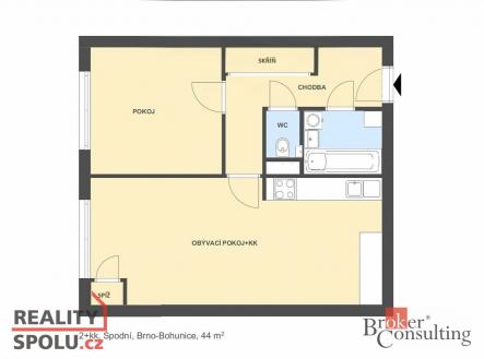 Pronájem, byty/2+kk, 44 m2, Spodní 673/8, 62500 Brno, Brno-město [ID 79970]