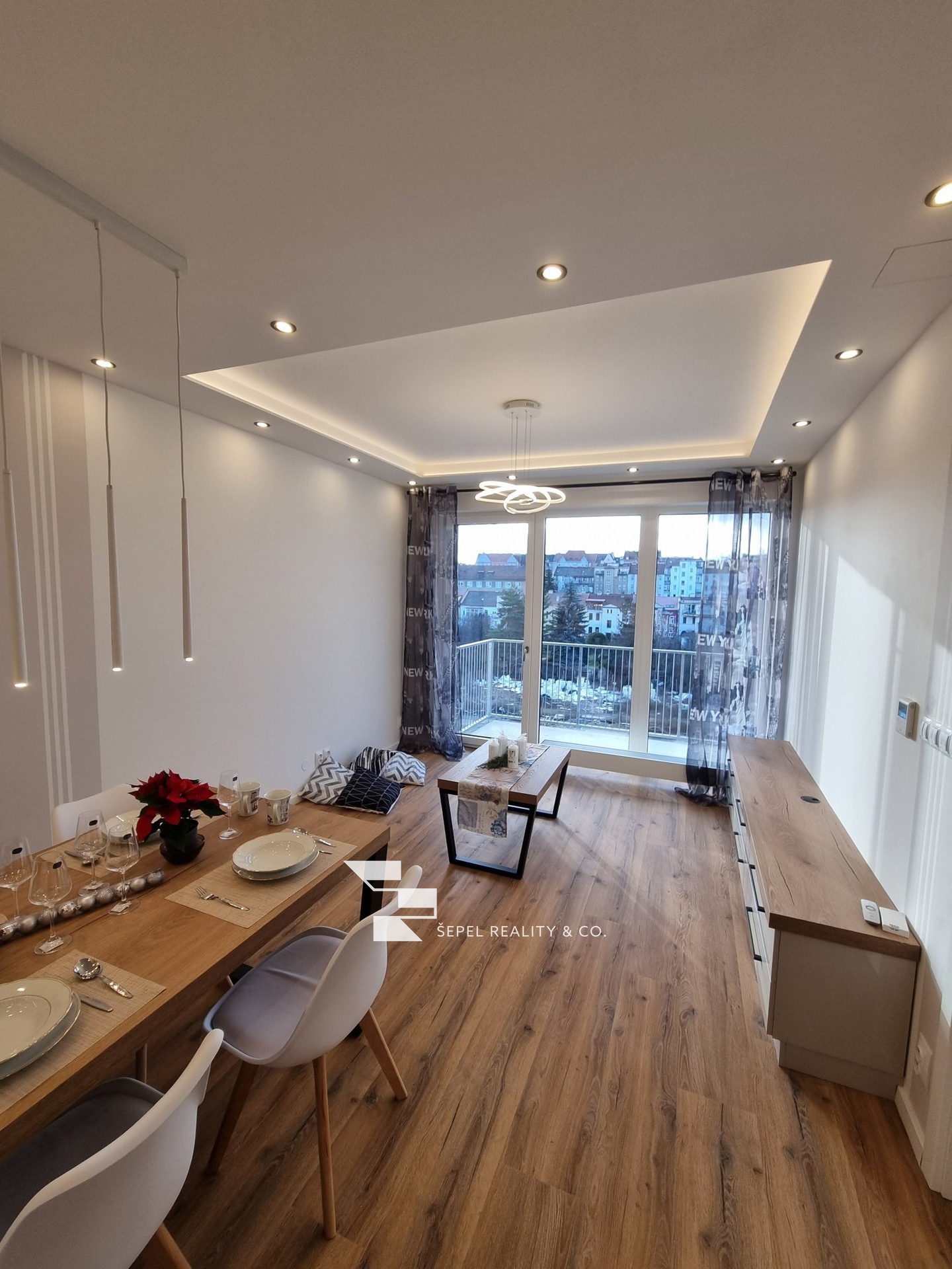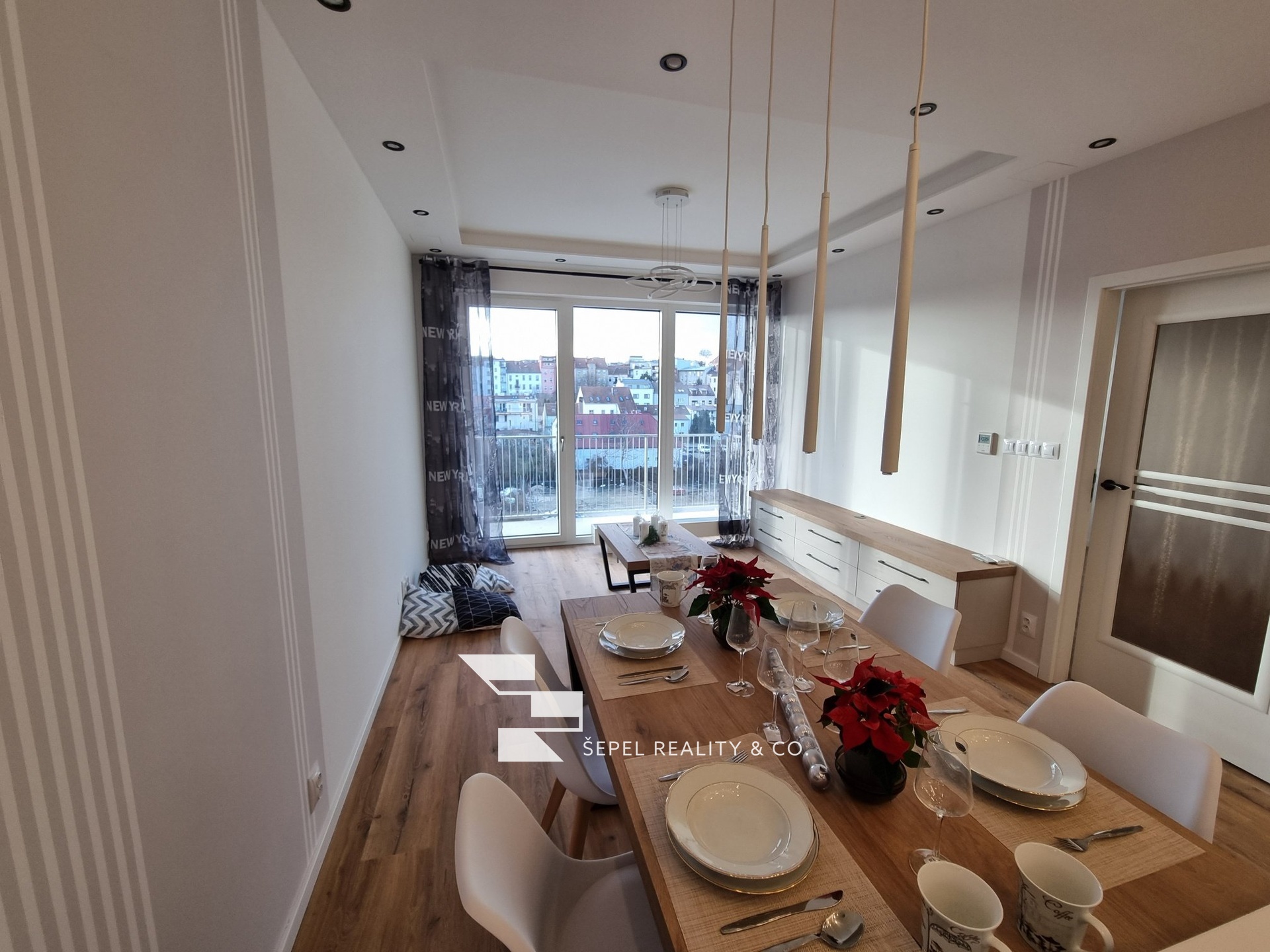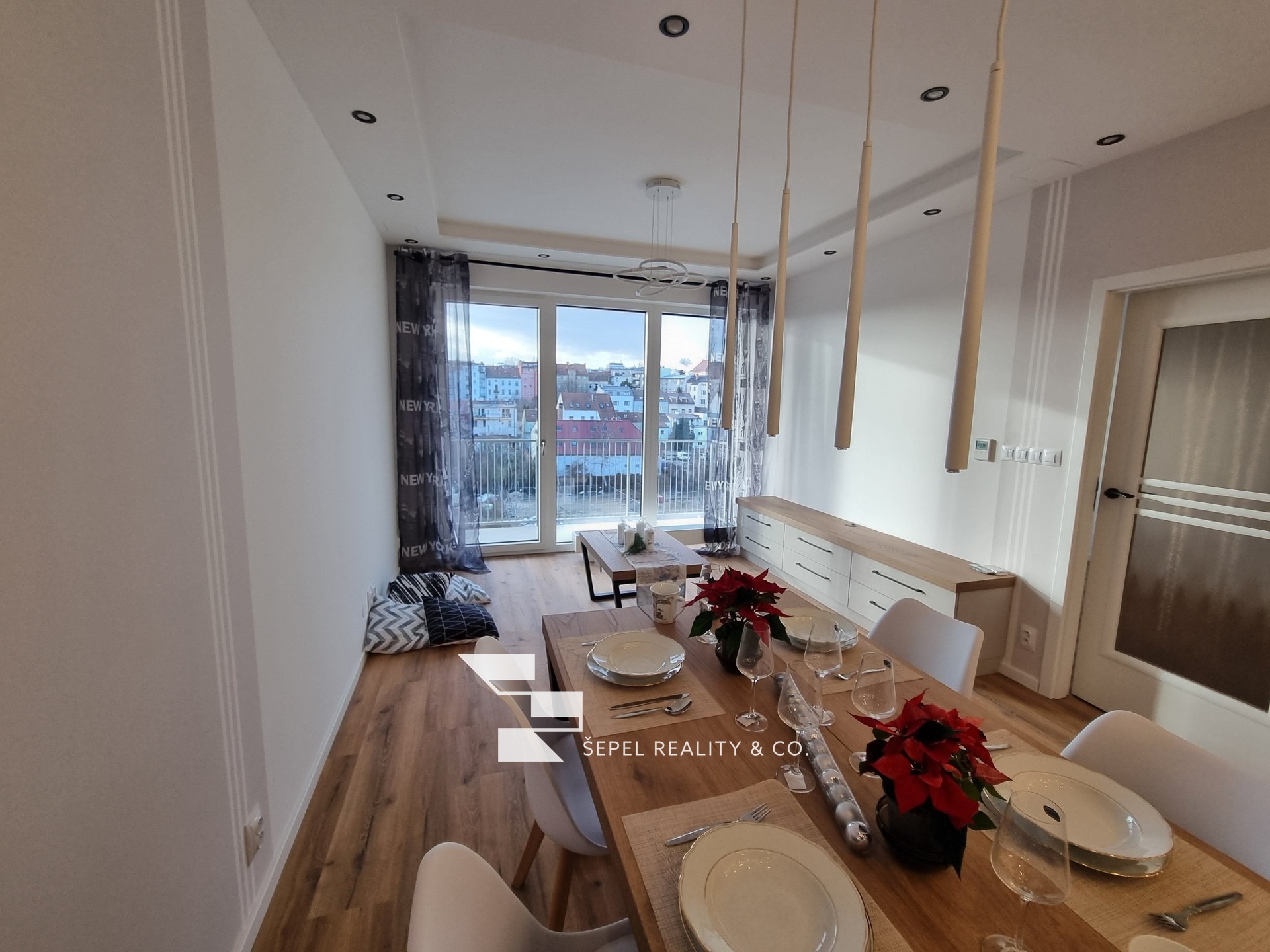 Se souhlasem majitele nabízíme k dlouhodobému pronájmu krásný byt 2+kk v 5.NP novostavby bytového domu v Brně Králově Poli - Ponava, ulice Střední. Byt má výbornou dostupnost do centra města, v blízkosti OC Královo Pole ( Tesco), Kaufland a bazény za Lužánkami. Výborná dostupnost na malý i velký městský okruh. Byt je vhodný pro pár a bude připraven k nastěhování od 23.12.2025. Kuchyňská linka se spotřebiči: indukční varná deska a elektrická trouba, mikrovlnná trouba, lednice s mrazákem, myčka a digestoř. Pod dřezem je vysouvací odpadkový koš s tříděním odpadu. Za kuchyní je komora s možností připojení pračky a sušičky. V obývací části je jídelní stůl a 4x židle, konferenční stolek a komoda. Je zde i v stup na balkon s orientací na západ. Venkovní žaluzie jsou na dálkové ovládání a celý byt je vybaven LED světly s podsvícením. V ložnici jsou zatemňovací závěsy, příprava na TV u stopu, lampičky na čtení s možností ovládat světla z postele. V předsíni jsou velké úložné prostory se zrcadlem a integrovanou šatní stěnou s botníkem. Jinak nezařízeno. Koupelna je dohromady s WC, je tam sprchový kout a otopný žebřík. K bytu náleží sklepní kóje na patře hned vedle bytu. Možnost kabelové TV a internetu. Náklady na bydlení cca 5.000,-Kč - vyúčtováno dle skutečné spotřeby. Majitel požaduje vratnou jistotu ve výši 2 měsíčních nájmů.