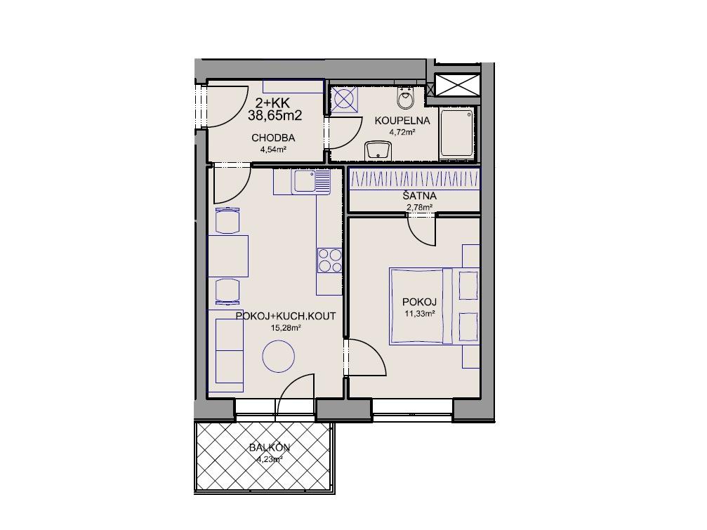 K pronájmu nabízíme bytovou jednotku o velikosti 2+kk s balkonem v Brně - Řečkovicích na ulici Nachová. Byt se nachází ve 3.NP novostavby cihlového domu s výtahem a jeho výměra je 40,2 m2 + 3,9 m2 balkon. Vstup je do předsíně, ze které je přístupný obytný prostor s kuchyňským koutem a dále pokoj se šatnou. Dispozici bytu doplňuje koupelna společná s WC. Z obytné místnosti je vstup na balkon. K bytu náleží sklep. Byt je pronajímán jako nezařízený, součástí vybavení bude kuchyňská linka se sklokeramickou varnou deskou, troubou, digestoří a lednicí a žaluzie v oknech. Nájemní smlouva bude uzavřena na dobu určitou jednoho roku s možností prodloužení, mimo vlastní nájemné bude nájemce hradit spotřebované energie a služby, zálohy činí 1.500,- Kč měsíčně. Elektřinu bude nájemce hradit přímo dodavateli el.energie. Majitel požaduje kauci ve výši jednoho nájmu. Byt je k dispozici od 1.3.2026.