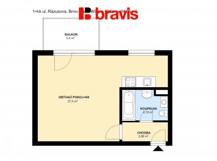 Pronájem jednotky 1+kk, ul. Rázusova, balkon, částečně zařízený