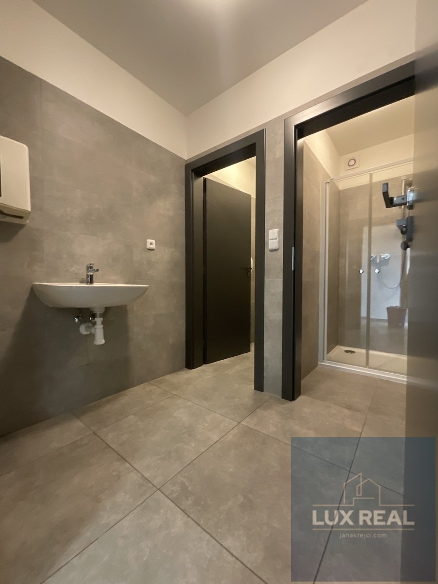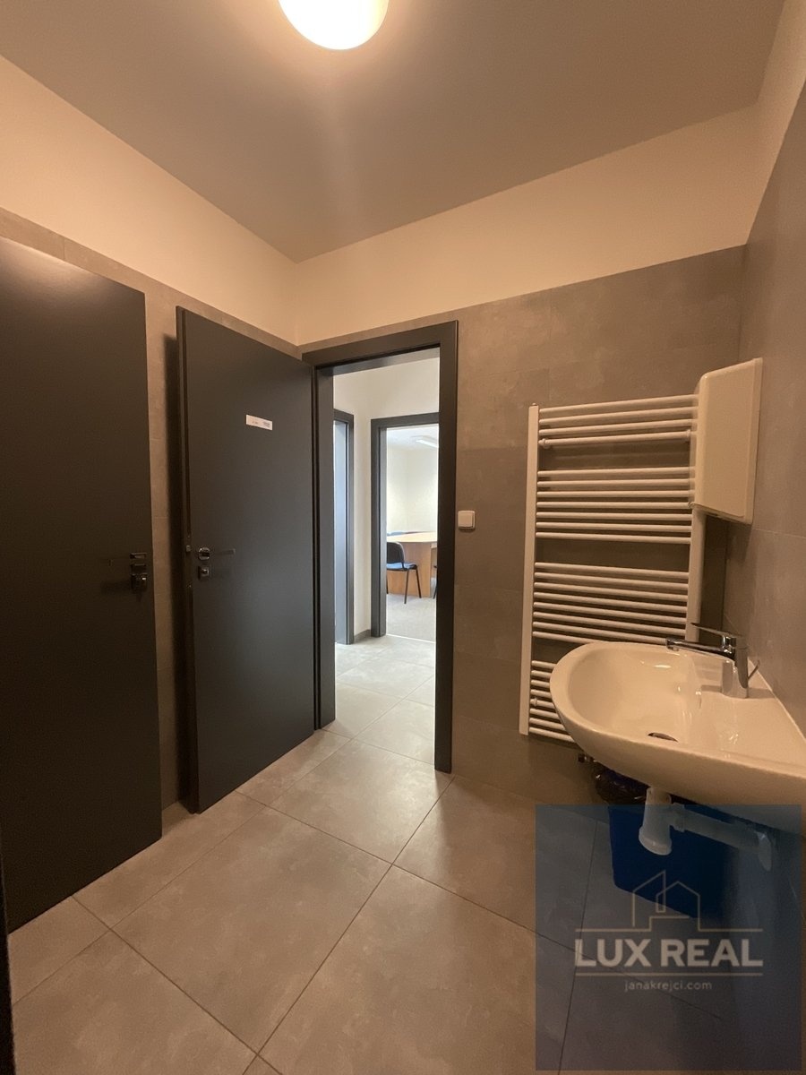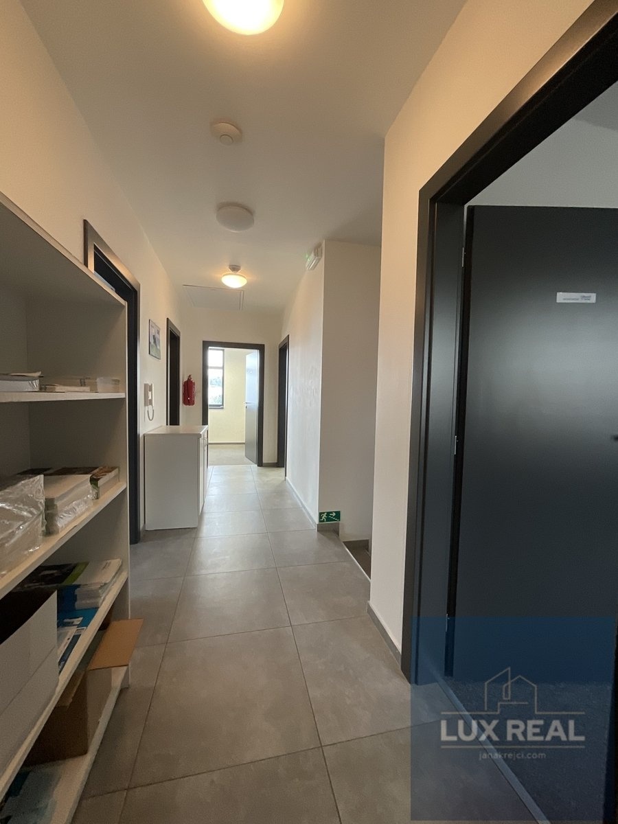 Nabízíme Vám pronájem nových moderních kancelářských prostor v administrativní novostavbě s parkovacími stáními v Brně - Líšni. Jsou to ideální prostory pro sídlo Vaší společnosti na jednom z nejlukrativnějších městských částí. Má vše co každá větší firma potřebuje. DISPOZICE: V přízemí vejdeme do vstupní haly a po schodišti do patra, kde nás vstoupíme do haly o výměře cca 8,4m2 s kuchyní a jídelním koutem o výměře cca 11,64m2, samostatným WC se sprchovým koutem o výměře 5,15m2, 4 samostatnými kancelářemi a skladem. Kuchyně s jídelním koutem je komplet vybavena lednicí, indukční deskou, mikrovlnnou troubou. Každá kancelář je vybavena klimatizací značky Acond a venkovními žaluziemi. Místnosti jsou poměrně veliké a jejich výměra činí cca 25,2m2, cca 15,36m2, cca 12,45m2, cca 20,11m2. Mezi dvěmi kancelářemi je samostatná místnost o výměře cca 5,89m2, která může sloužit jako úklidová místnost, archiv, ale i jako serverovna. Součástí pronájmu jsou i 4 parkovací místa přímo před budovou. Měsíční poplatky: Nájem za prostory činí 60.000, -Kč měsíčně + DPH v zákonné výši. Parkovací místa jsou zahrnuta v ceně nájmu. Služby budou hrazeny formou záloh měsíčně. Kauce činí 120.000, -Kč Prostory jsou ihned k dispozici. Můžete si je pronajmout, jak komplet vybavené dle fota nebo bez vybavení. Nabízené prostory jsou vhodné nejen jako kanceláře, ale i díky dostatku parkovacích míst je zde potenciál ke spojení obchodních prostor s kancelářemi. Velkou výhodou je, že je vše nové. Průkaz energetické náročnosti budovy není aktuálně k dispozici. V inzerci je dle legislativních požadavků uvedena en. třída G. V případě dotazů či zájmu o prohlídku nás neváhejte kontaktovat na níže uvedeném čísle nebo e-mailu.