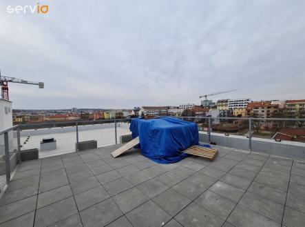 Nabízíme exkluzivně pronájem kancelářske s prostornou terasou, vířivkou (výhled na dominanty Brna – Petrov, Špilberk) v 8.NP s výtahem o velikosti 149 m2 (včetně 39,98 m2 terasy), se sklepem a možností i pronájmu krytého PS v objektu Rezidence Hvězdová, polyfunkční dům obklopený městským parkem, odkud je to na brněnské náměstí Svobody procházkou deset minut. Rezidence Hvězdová jedinečně kombinuje všechny ingredience moderního městského bydlení. Celá čtvrť navíc aktuálně prochází výraznou proměnou – v přímém sousedství vzniká nové komunitní a kulturní centrum, plánují se originální rezidenční komplexy jako např. Pekárenský dvůr, jejichž součástí bude městská zahrada i pestrá škála služeb. Díky přísně geometrické fasádě a promyšlené dispozici má každá jednotka alespoň jednu plně prosklenou stěnu, díky čemuž mizí hranice mezi apartmánem a jeho okolím. Architekt Roman Gale zároveň na plášť domu navrhl speciální řešení omítky v zajímavém lávovém designu, která bude první podobnou realizací v Brně. Rezidence Hvězdová se také stala realitním projektem roku 2020 pro Jihomoravský kraj. Součástí jednotky je moderně vybavená koupelna (sprcha nebo vana, WC, umyvadlo, galerka se zrcadlem, věšáky, pračka), kompletní KL včetně spotřebičů (myčka, trouba, sporák), vinylová podlaha, jídelní stůl a židle, možnost dovybavení postelí (jednolůžko, dvojlůžko), předsíňový nábytkový program, a další vybavení dle domluvy s majitelem. Ke každému bytu náleží sklep. Objekt zabezpečen kamerovým systémem. Možnost pronájmu krytého PS za poplatek 2.900,-Kč/měs. Rozměry jednotlivých místností: chodba 4,7 m2, předsíň 7,82 m2, obývací pokoj s KK 56,98 m2, 3x ložnice 10,17 m2, 11,73 m2 a 10,11 m2, koupelna 5,16 m2, WC 1,98 m2, terasa 39,98 m2. Kauce ve výši dvou měsíčních nájmů, provize RK 1 nájem +DPH. V případě zájmu jsou možné prohlídky kdykoliv po domluvě.