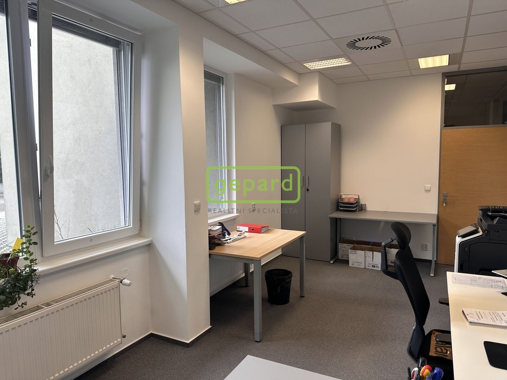 Nabízíme k pronájmu prostorné a reprezentativní kancelářské prostory o celkové podlahové ploše 100,3 m2 m2, plus sdílené prostory o ploše 30,16 m2 na klidné ulici Kořenského v Brně - Řečkovicích. Přímo na ulice jsou stále volná místa k parkování, dále je možno pronajmout 2 parkovací místa doslova na očích z jedné pronajaté kanceláře. Kancelářské prostory se nachází ve přízemí nově zrekonstruovaného cihlového polyfunkčního domu, kde sídlí významná nadnárodní firmy, která přenechává část svých prostor. Z obdélníkového vstupního prostoru vedou dveře do jednotlivých kanceláří, do kuchyně a na WC. Celkem se jedná o pět kanceláří o rozměrech 19,87 m2, 21,11 m2, 21,39 m2 a 17,85 m2. Dále k pronájmu je možné využívat sdílené prostory - zasedací místnost 13,62 m2, kuchyň 10,54 m2 a WC. Ke kancelářím je možné pronajmout 2 parkovací stání, která jsou v těsné blízkosti bytového domu, ihned vedle jedné z kanceláří. V ceně pronájmu je úklid zajištěný externí firmou. Více informací poskytne makléř Aleš Kavín Cena: 30.000,- Kč plus energie