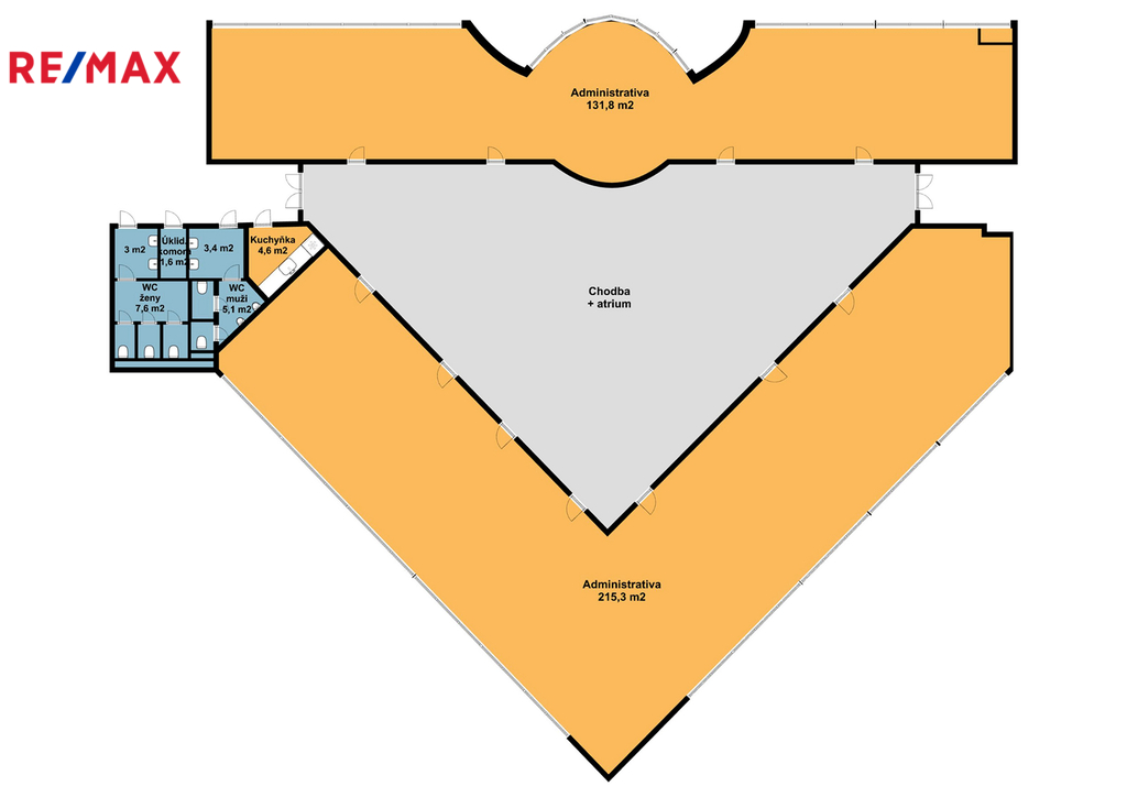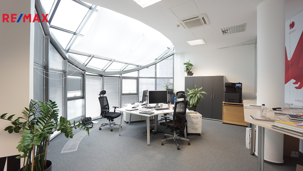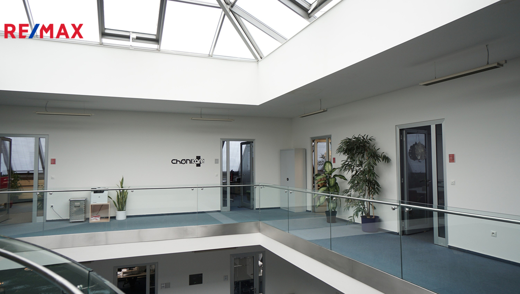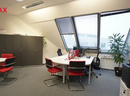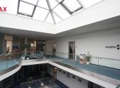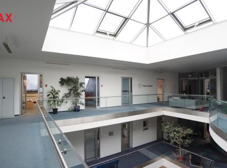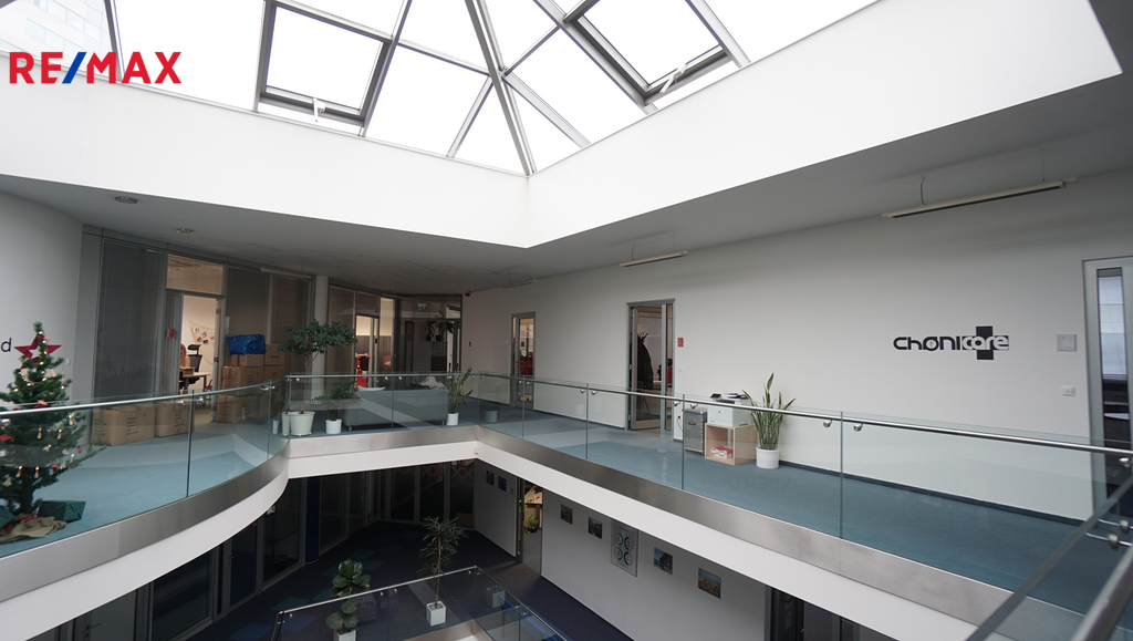 V zastoupení majitele nabízím k pronájmu kanceláře s otevřeným ochozem ve třetím patře administrativní budovy s obchodní pasáží. K dispozici je výtah. Prostor tvoří tvar trojúhelníku kolem středové části, která je otevřená až do přízemí budovy. Kanceláře jsou doplněny skladem, sociálním zařízením a kuchyňkou. Pronajímá se bez interiérového vybavení. Celková výměra nabízených kanceláří se zázemím je 410 m2. K dispozici dle dohody od července 2025. Možnost pronájmu až 9 parkovacích stání za poplatek. Cena pronájmu: 250 Kč/m2 Poplatky: 110 Kč/m2 (včetně energií) Kauce: 3 měsíční nájmy + poplatky + DPH Poplatek RK: 1 měsíční nájem bez služeb + DPH V případě zájmu o prohlídku mě neváhejte kontaktovat