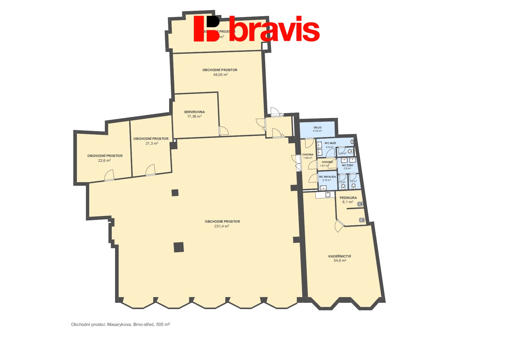 Pronájem kancelářských prostor, 506 m², ulice Masarykova, Brno střed