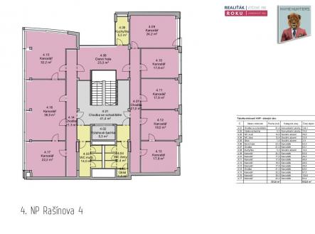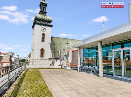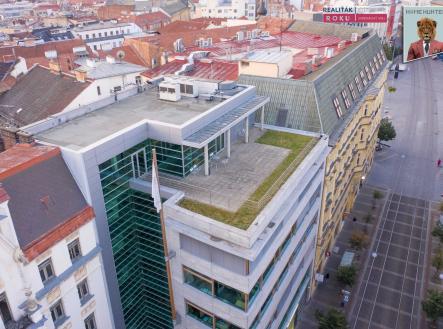 Právě máte možnost pronájmu exkluzivních kanceláří v srdci historického Brna. Nádherná monolitická prosklená budova s terasou otevírá své prostory pro všechny úspěšné podniky, toužící po prestižní adrese v centru Brna s možností parkování přímo v objektu. V rámci užitné plochy 287,2 m2 je k dispozici celé 4.NP, které novým nájemníkům nabízí 8 samostatných kanceláří. Vnitřní dispozice kanceláři jde změnit dle Vašich potřeb. Patro je rozděleno na 2 části. Levá část orientovaná do ulice Rašínova nabízí reprezentativní prostory s velkými okny, ideální pro schůzky s klienty a jednací místnosti. Ředitelé ocení velkou rohovou kancelář s výhledem na kostel sv. Jakuba. Pravá část je orientována do vnitrobloku je nabízí tiché prostředí pro back office. každá část je samostatně přístupná z chodby a také jsou tyto dvě části propojeny denní místností s kuchyňkou. Budova disponuje velkou terasou s výhledem na obě hlavní dominanty Brna - hrad Špilberk i katedrálu sv. Petra a Pavla, kterou můžete využívat. Firemní večírky nebo obchodní setkání dostanou díky tomuto výhledu novou dimenzi. Stejné tak Vaši zaměstnanci ocení možnost odpočinku a čerstvého vzduchu s krásným výhledem na město. Unikátem je pak dále parkovací zakladač s kapacitou přes 30 míst, díky kterému si užijete komfortu parkování v centru, vč. vjezdu do pěší zóny. Než stihnete sejít dole ke garážím, už Vás bude čekat automobil nachystaný k výjezdu. Budova je po kompletní rekonstrukci a prostory mohou být pro Vás připraveny k nastěhování v rámci pár týdnů. Veškeré kanceláře jsou plně klimatizované a disponují velkými okny, díky kterým budete pracovat v příjemném prosvětleném prostředí. Každé patro disponuje vlastní kuchyňkou a toaletami, K dispozici jsou i skladové prostory v suterénu domu. Tyto jedinečné prostory jsou nabízeny za 118.470,- Kč/měsíc + poplatky. V případě zájmu o více informací čí prohlídku mě neváhejte kontaktovat.