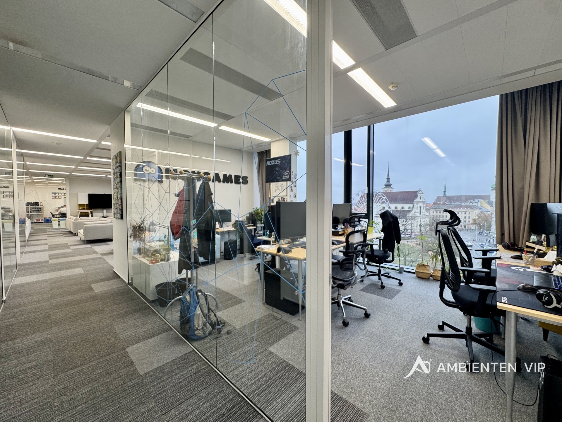 U této nabídky nehradíte provizi. Nabízíme k pronájmu luxusní a reprezentativní kanceláře o výměře 403 m² v moderní administrativní budově přímo u Moravského náměstí v Brně-středu. Prostor je klidný, funkčně členěný a připravený k okamžitému provozu bez nutnosti zásadních úprav. Jedná se o jednu z nejžádanějších adres v centru města s perfektní dostupností MHD – uzel Česká / Moravské náměstí – a kompletní občanskou vybaveností v pěší docházce, včetně kaváren, bister, restaurací, bank a pošty. Parkování je možné v objektu nebo v bezprostředním okolí dle dohody. Kanceláře se nachází v reprezentativním administrativním objektu se vstupem přímo z ulice, výtahem a bezbariérovým přístupem. Budova nabízí recepci s provozem 24/7, ostrahu a kamerový systém, a to v rozsahu dle zvolené nabídky. Samotný prostor je navržen s důrazem na efektivní provoz a komfort pracovního prostředí. K dispozici je plně vybavená kuchyň s jídelním stolem a posezením, sociální zázemí, 3 uzavřené kanceláře pro přibližně 8–10 osob, 1 menší kancelář vhodná pro 1–3 osoby nebo jako klidová zóna, sdílené pracovní a relaxační posezení s výhledem na Moravské náměstí a celé Brno. K dispozici jsou dále dva call boxy, hlavní zasedací místnost pro cca 10 osob, menší zasedací místnost pro 3 osoby a samostatná šatna. Standard prostoru odpovídá moderním kancelářským nárokům – otevíratelná okna, stínění (předokenní žaluzie), klimatizace, skleněné příčky a velké prosklené plochy zajišťující dostatek denního světla. Kombinace uzavřených kanceláří a tichých zón přináší velmi dobrou akustiku a vysoký pracovní komfort. Samozřejmostí jsou datové rozvody a vysokorychlostní internet. Kanceláře jsou ideální pro společnost s 25–35 pracovními místy, která hledá chytrý mix větších uzavřených kanceláří, klidových zón a zasedacích místností. Ideální je jako týmový hub pro produktové, obchodní či back-office týmy, případně pro společnosti, které chtějí být v centru Brna, aniž by musely dělat kompromisy v oblasti komfortu, světla a provozní efektivity. V případě zájmu o prohlídku mě neváhejte kontaktovat. Půdorys a detailní provozní kalkulaci rád zašlu na vyžádání.