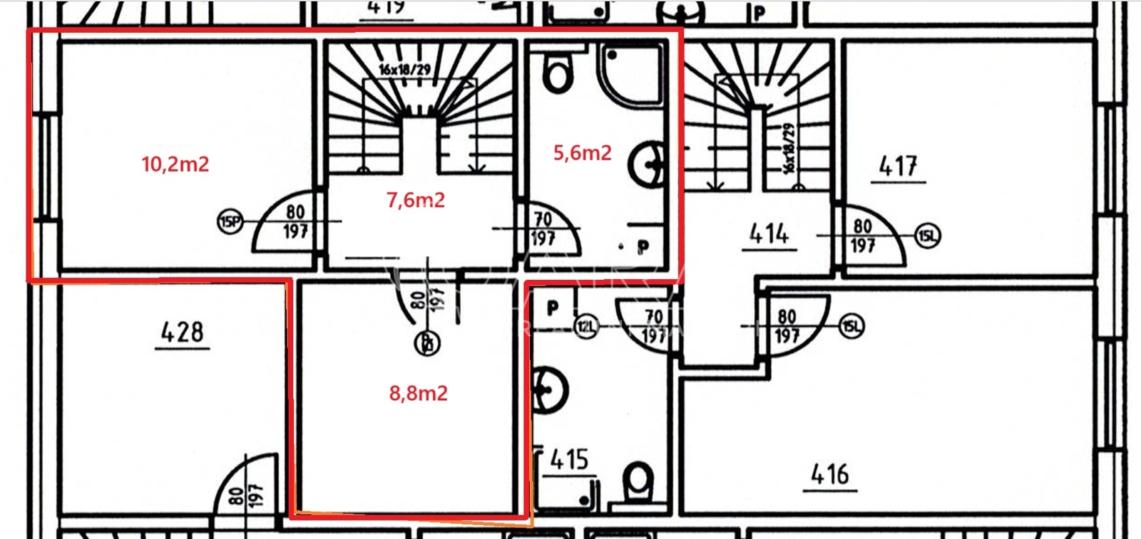 Nabízíme k pronájmu atypický mezonetový byt o velikosti 3+kk, nacházející se na ulici Řeznická, v části obce Trnitá v Brně. Tento jedinečný byt s celkovou plochou 65 m² se nachází ve třetím a čtvrtém nadzemní podlaží cihlového domu. Dispozice: 3.NP: obývací pokoj s kuchyňským koutem 22,2 m2, předsíň 8 m2, koupelna se sprchovým koutem 3,4 m2 4.NP: pokoj 10,2 m2, pokoj 8,8 m2, koupelna s vanou 5.6 m2 chodba 7,6 m2 Velkou devizou bytu jsou dvě koupelny - jedna se sprchovým koutem, druhá s vanou. Byt se nabízí, kromě kuchyňské linky s vestavěnými spotřebiči, nezařízená nábytkem. V bytě je k dispozici plynový kotel pro vytápění a elektrický bojler na ohřev vody. Dům je ve velmi dobrém stavu a je vybaven výtahem. K nemovitosti náleží také jedno parkovací místo, které je k dispozici za 1 000 Kč měsíčně. Okolí je dobře dostupné díky MHD, což zajišťuje snadný přístup do dalších částí města. V blízkosti se nachází veškerá občanská vybavenost, což naplňuje potřeby moderního bydlení. Vhodné pro max 4 osoby.