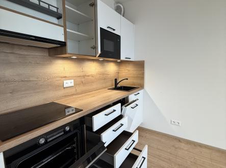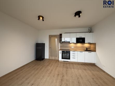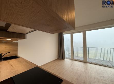 Pronájem moderního 1+kk s terasou a parkovacím místem (s dobíjecí stanicí) – Brno‑Líšeň, Trnkova