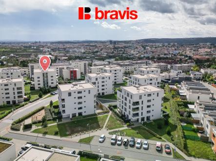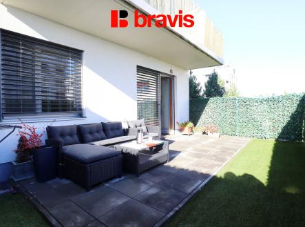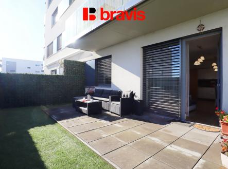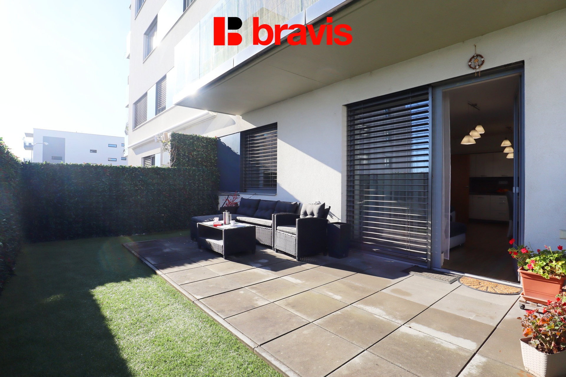 Pronájem moderního bytu 2+kk se zahrádkou, ul. Moskalykova, Brno - Sadová, zařízené, sklep, garážové