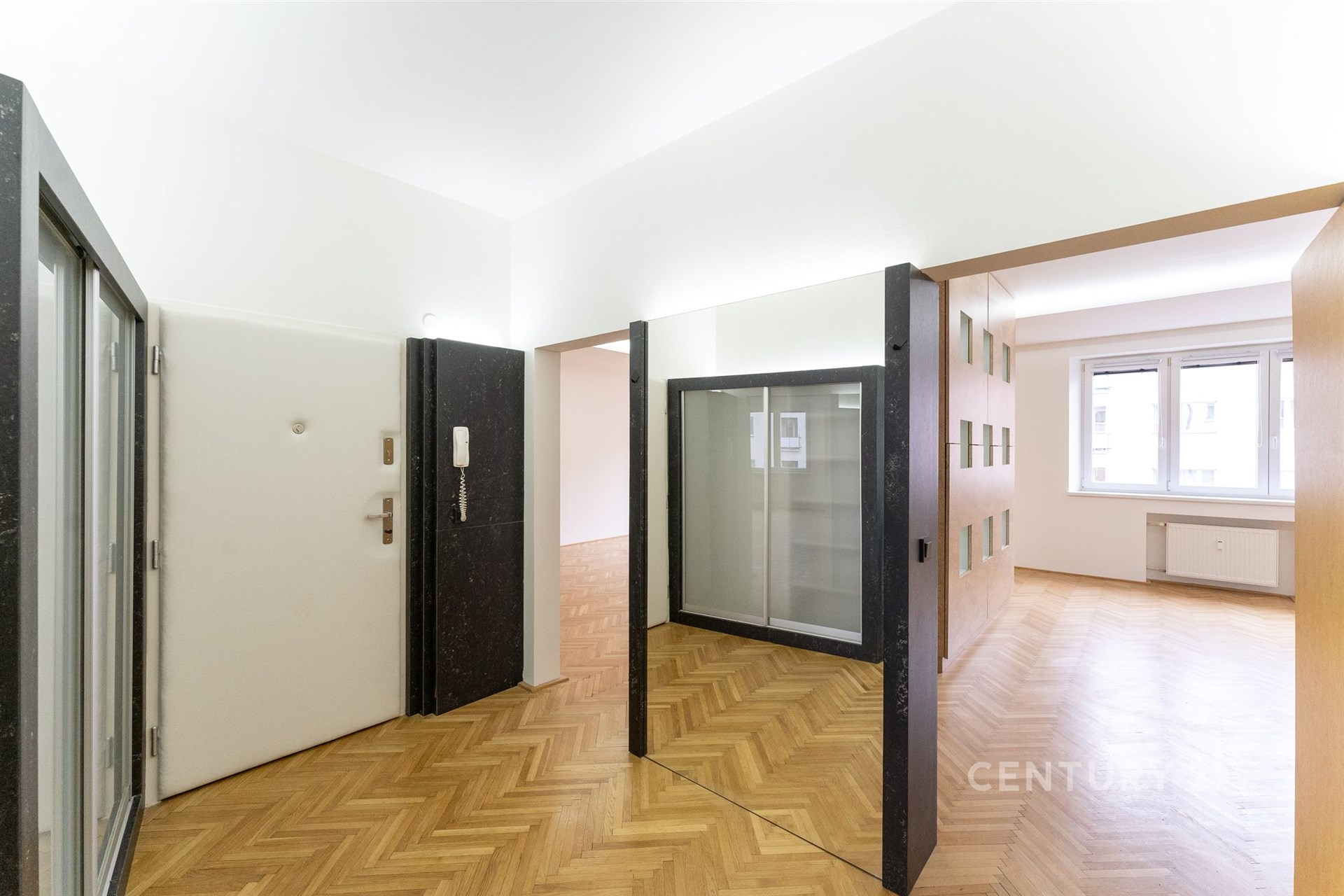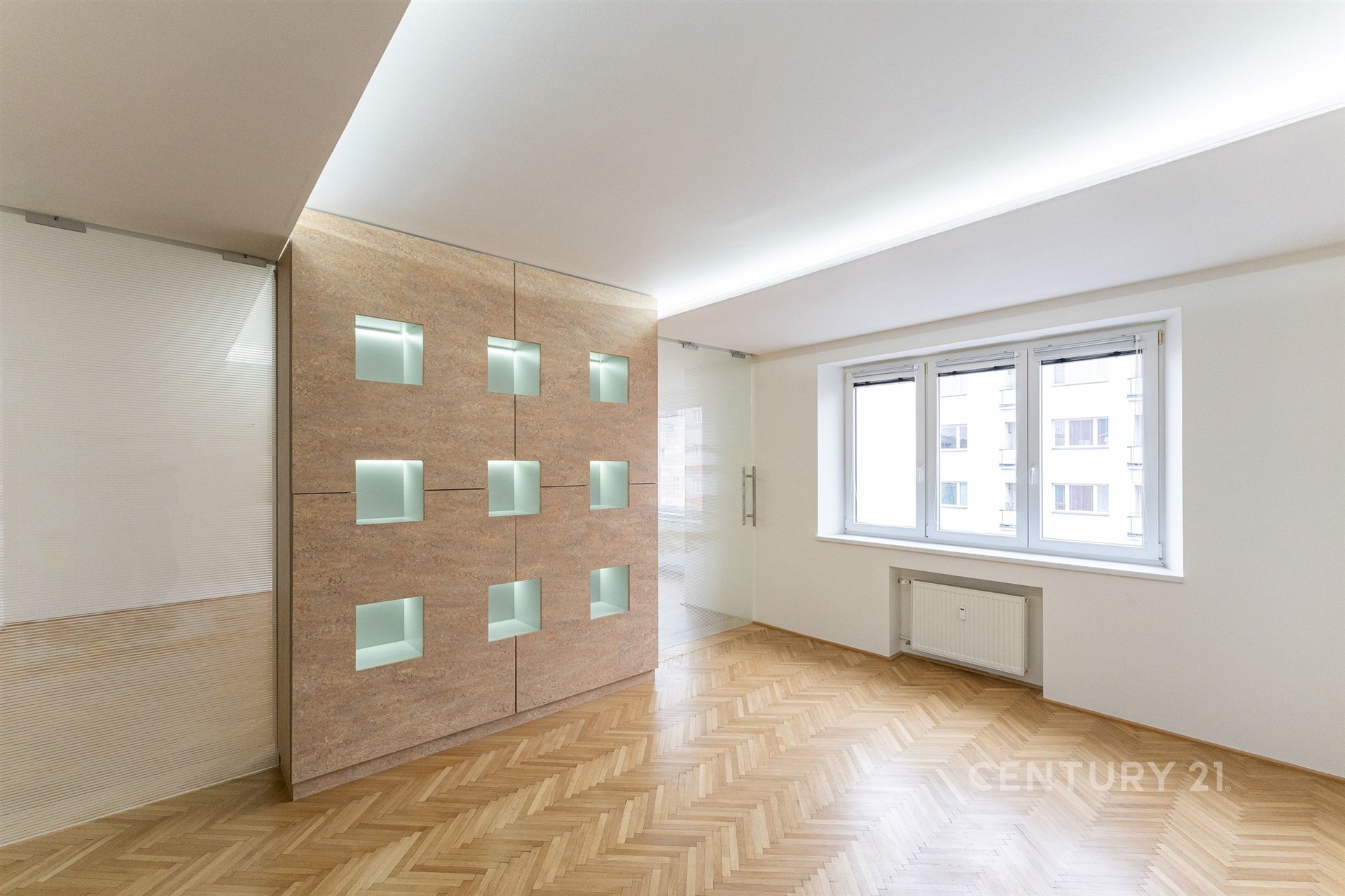 Ve výhradním zastoupení nabízím k pronájmu prostorný a světlý byt 2+1 (možno využívat i jako reperezentativní kancelář) o velikosti 88,6 m2 v 5. nadzemním podlaží bytového domu (s výtahem) na nároží, ulic Kotlářská/Bayerova. Skvělá poloha v dosahu centra a s výbornou dostupností MHD. Hlavní benefity • Nadstandardní interiér řešený na míru, velkorysé a vzdušné dispozice • Dva prosvětlené pokoje: 35 m2 a 22,5 m2, oddělené vestavěnými skříněmi a posuvnými prosklenými dveřmi • Prostorná koupelna s velkou vanou i sprchovým koutem (9,2 m2) • Samostatná kuchyně 10 m2, předsíň 8 m2 s úložnými prostory • Plastová okna se žaluziemi, podlahy parkety a dlažba • Topení a ohřev vody centrálně Dispozice a vybavení • Kuchyně: kuchyňská linka, elektrický sporák, digestoř, spíž • Koupelna: vana, sprchový kout, umyvadlo, WC • Byt je nabízen jako nezařízený Náklady a podmínky • Nájemné: 25 000 Kč/měsíc (bez energií) • Zálohy na energie: 5 810 Kč (1 osoba) / 7 960 Kč (2 osoby) • Kauce: 1× měsíční nájemné • Provize RK: 1× měsíční nájemné + DPH • Vhodné pro 1–2 osoby (2 obytné místnosti mají mezi sebou posuvné prosklené tabule) • Nájemní smlouva na 1 rok s možností prodloužení • Byt je volný ihned Lokalita • Ulice Kotlářská – pár minut od centra, kompletní občanská vybavenost, obchody, kavárny, služby, rychlé spojení MHD • Parkování: v rámci okolních ulic Máte zájem o prohlídku? Ozvěte se mi, rád vám byt na Kotlářské osobně ukážu.