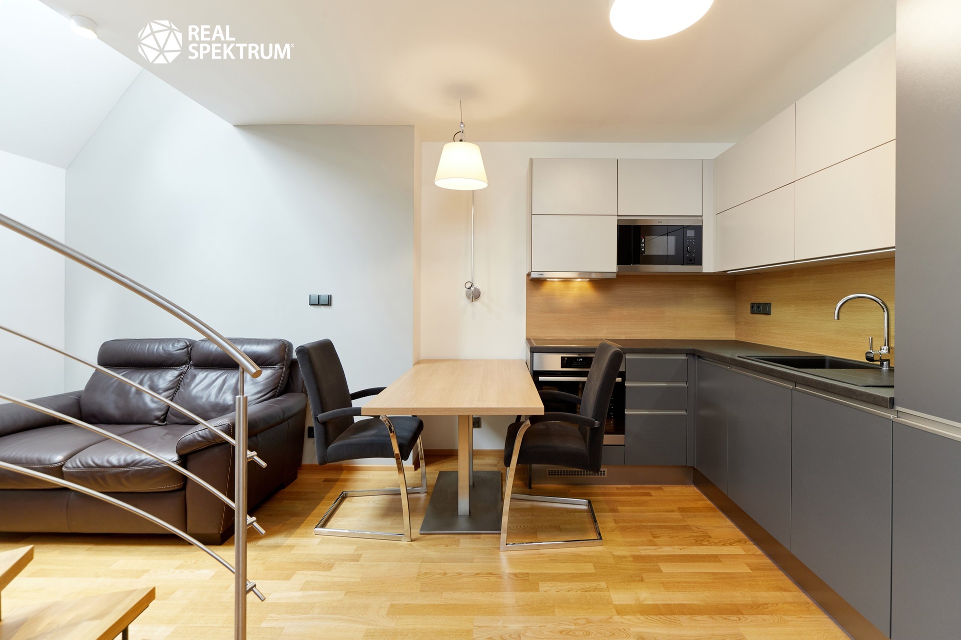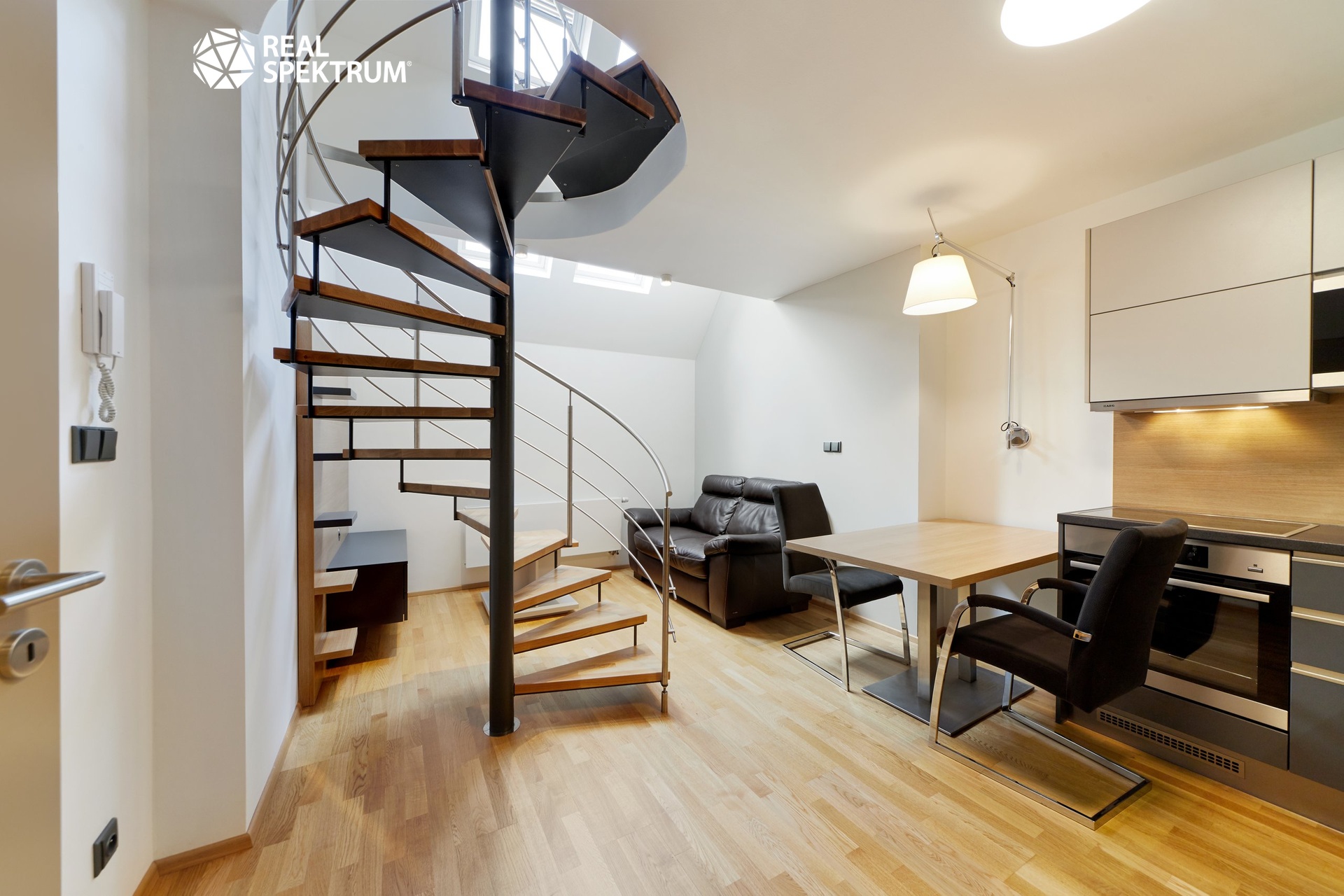 Nabízíme k pronájmu krásný, moderní a vybavený byt 2+kk s klimatizací, jenž se nachází v historickém centru města a láká nové nájemníky! Ti kteří chtějí být v centru dění také jistě ocení bohatou občanskou vybavenost v blízkém okolí. Byt se nabízí plně vybavený, kde máte k dispozici kuchyňskou linku se spotřebiči (varná deska, trouba, digestoř, mikrovlnka, myčka lednice s mrazničkou), jídelní stůl a židle, obývací prostor s pohovkou, konfe. stolkem a tv stěnou. Ložnice se nachází ve druhém patře a ze jde umístěna manželská postel, noční stolky a úložné prostory s pračkou. Koupelna je vybavena sprchovým koutem, umyvadlem a toaletou. Společné prostory a chodby jsou monitorovány kamerami, je zde výtah a také možnost parkování za příplatek. Měsíční nájem je 21 000 Kč + 4 864 Kč za energie, služby a Internet. Kauce je výši 51 728 Kč. Majitelka preferuje dlouhodobý pronájem a krátkodobý pronájem po dohodě. V případě zájmu o prohlídku bytu nás neváhejte kontaktovat! FOR ENGLISH - please do not hesitate to contact the real estate agent!