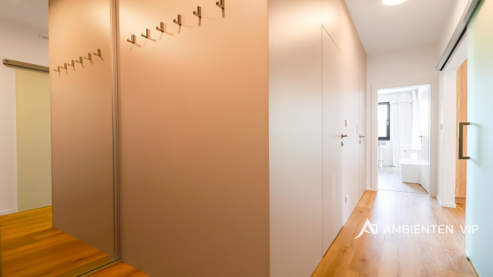 AMBIENTEN VIP nabízí krásný byt o dispozici 3+kk, který je vybaven v nadstandartním provedení s balkónem (6m2) s francouzskými okny a možností parkování na soukromém pozemku. Byt o dispozici 3+kk se nachází v 1. NP (pocitově 2. z důvodu umístění bytového domu ve svahu) nového bytového domu z roku 2021 v městské části Nový Lískovec nedaleko nákupního centra Kampus a v blízkosti tamních fakult Masarykovy univerzity. Byt nabízí 2 neprůchozí plně vybavené pokoje, obývací prostor s kuchyní, koupelnu se sprchovým koutem, pračku, šatnu a balkón o velikosti 6 m2 na který se dostanete přes francouzské okna, které zajišťují krásný výhled a přirozené světlo. Vytápění je řešeno teplovodními radiátory. Ty jsou vytápěny v celém domě ze společné kotelny, měření kalorimetrem. Veškerá okna v bytě jsou trojskla, kdy jedna z vrstev je protihluková, zaručí tak maximální soukromí a ticho v samotném bytě. Vybavení bytu: Moderní kuchyňská linka s vestavěnými spotřebiči Whirpool (indukční deska, horkovzdušná trouba, mikrovlnná trouba, lednice, mraznička, myčka, odsavač par). Obývací prostor je vybaven kuchyňským stolem se židlemi, kvalitní koženou sedačkou, konferenčním stolkem, tv komodou a chytrou televizí. Pokoje jsou vybaveny postelemi 200x140cm, pracovním stolem se židlí a stolkem pro tiskárnu, v celém bytě i pokojích jsou vestavěné skříně pro dostatek úložného prostoru. Byt je k dispozici od 15.2.2026. Kauce činí 2 měsíční nájmy vč. záloh na energie a služby. Měsíční nájem činí 33.000,- Kč + měsíční paušál na služby a energie činí 4.000,- Kč. Možnost pronajmout si parkovací stání na soukromém pozemku s kamerovým systémem přímo u domu za 2.000 Kč. V případě zájmu o prohlídku neváhejte kontaktovat makléře.