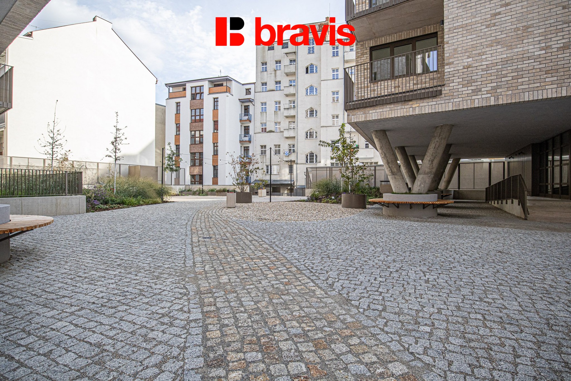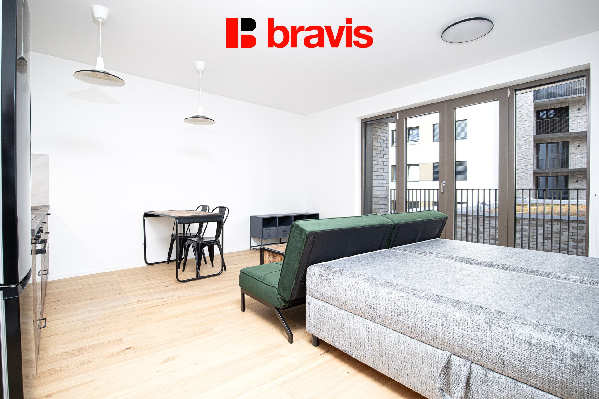 Pronájem novostavby 1+kk, Brno - Zábrdovice, ulice Bratislavská, lodžie, zařízené, parkování v garáž